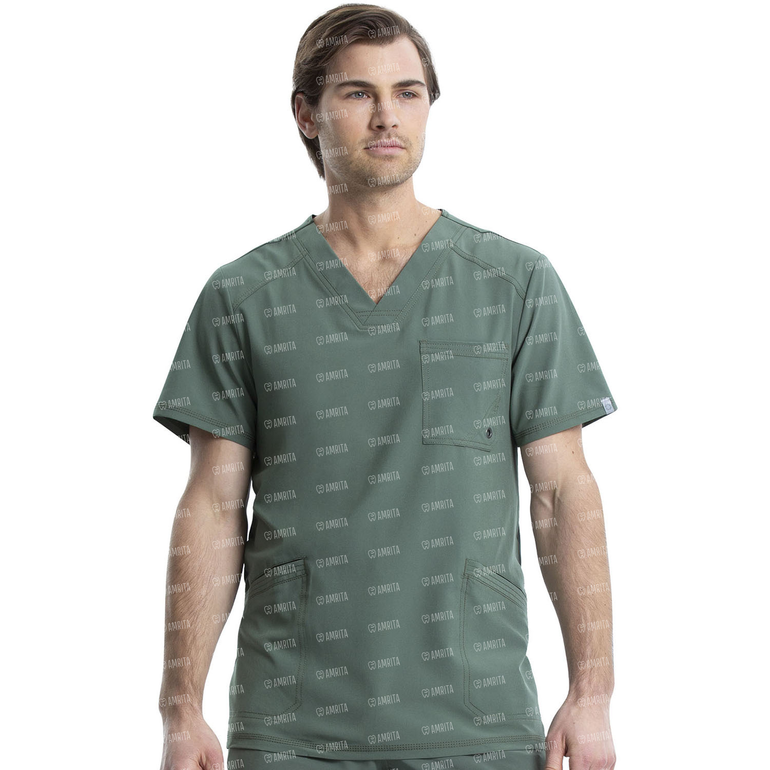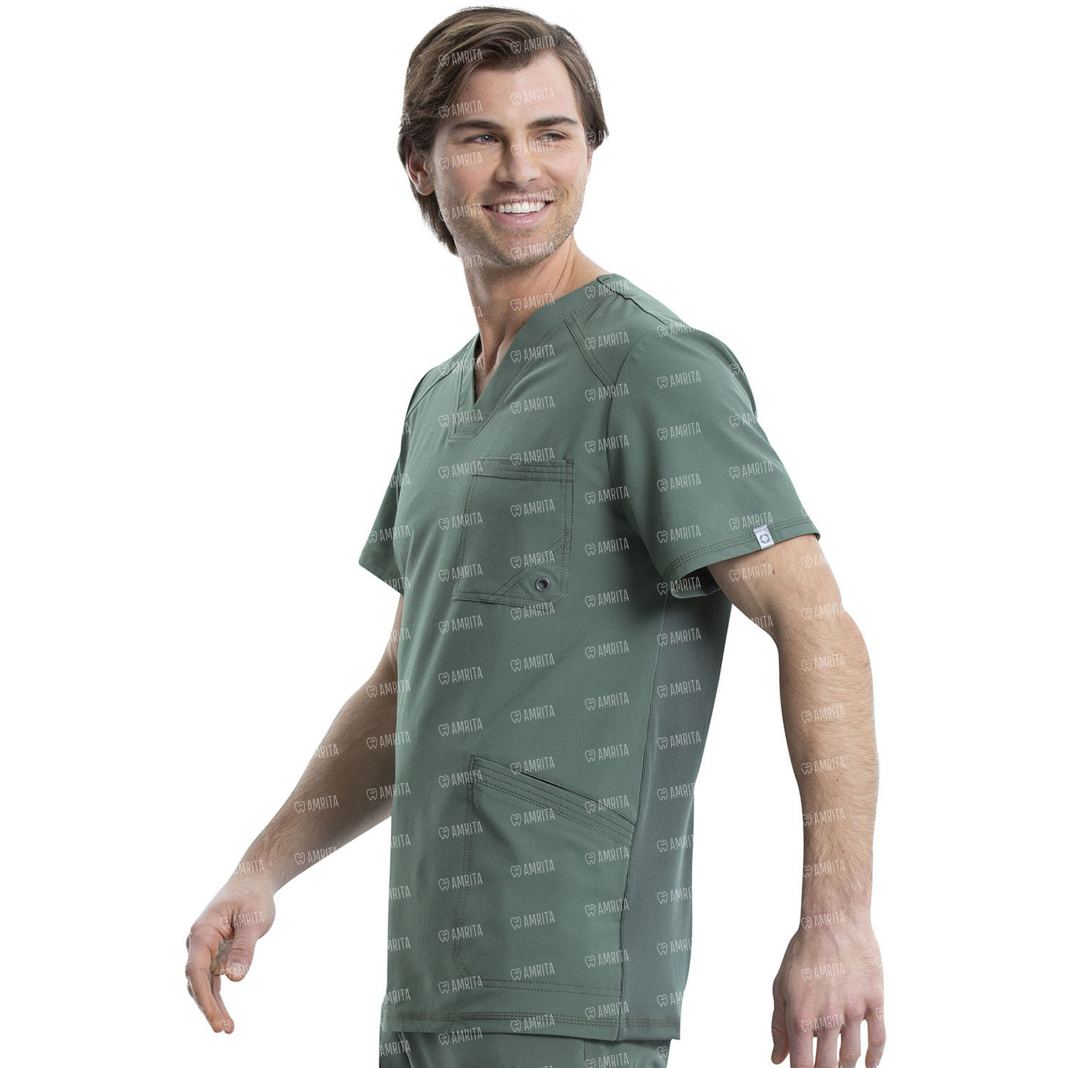 Мужской медицинский топ Cherokee CK900A выполнен в современном крое, имеет V-образный вырез в стиле модерн, нагрудный карман с люверсами, прорезные передние карманы с тройной строчкой, переднюю и заднюю кокетки и эластичные вставки на спине в рубчик для дополнительного комфорта.
