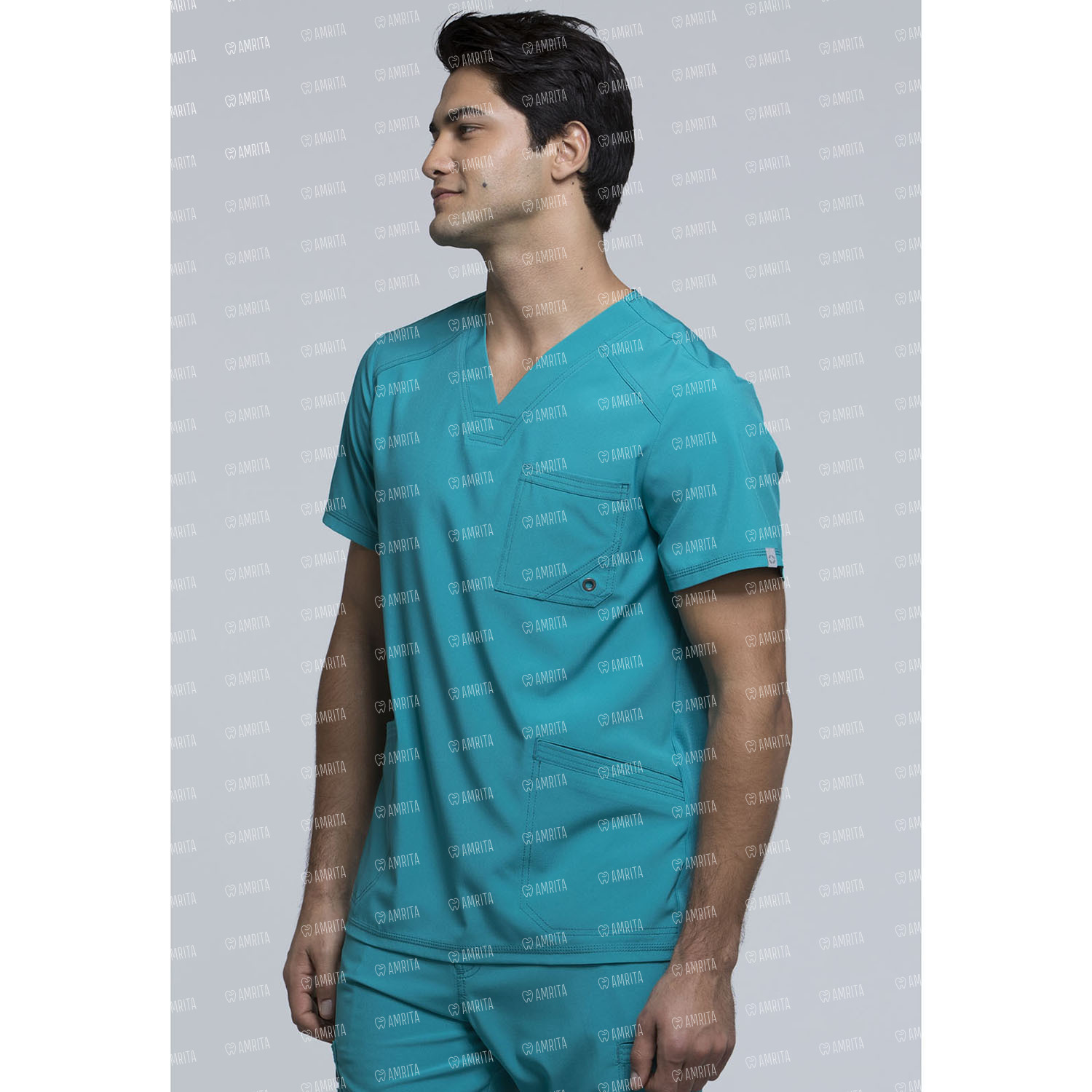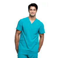 Мужской медицинский топ Cherokee CK900A выполнен в современном крое, имеет V-образный вырез в стиле модерн, нагрудный карман с люверсами, прорезные передние карманы с тройной строчкой, переднюю и заднюю кокетки и эластичные вставки на спине в рубчик для дополнительного комфорта.