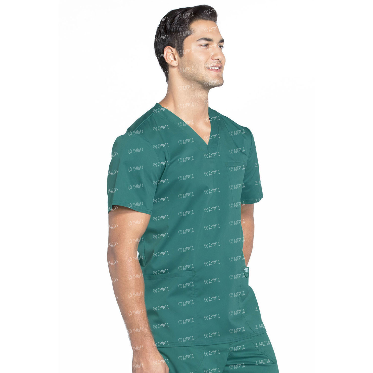 Топ мужской медицинский от производителя Cherokee WW670 выполнен в стиле модерн с V-образым вырезом. Изделие имеет нагрудный карман с прострочкой для карандаша, два накладных кармана, этикетку с логотипом и петлей для удостоверения личности, кокетку сзади и разрезы по бокам.