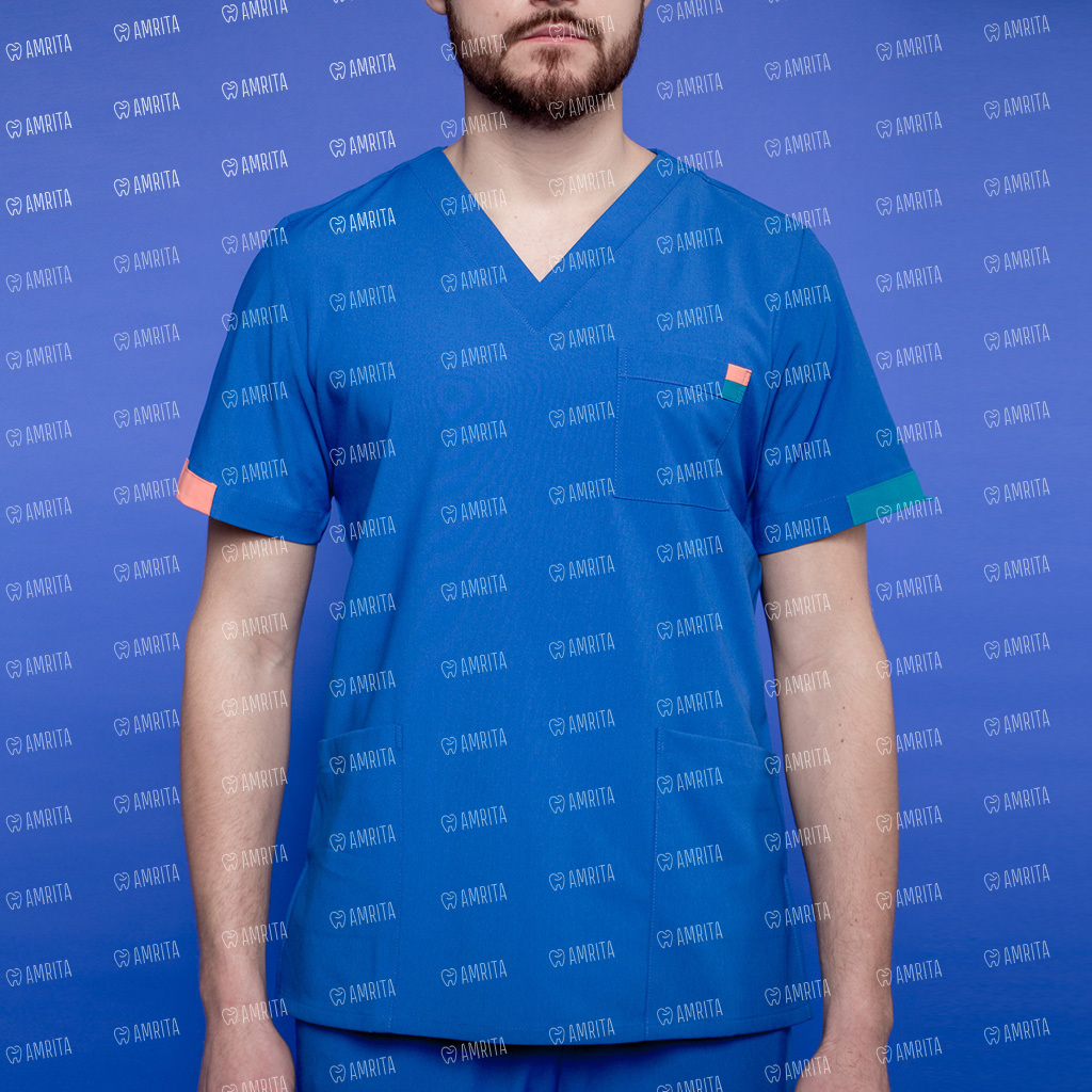Мужская медицинская туника серии 258 Michigan от бренда PULSE имеет прямой крой, короткий рукав, разрезы по бокам и V-образный вырез. Модель дополнена тремя карманами: два накладных и один нагрудный, а также контрастными вставками на рукавах и кармане. Данное изделие доступно в разных цветовых вариантах.