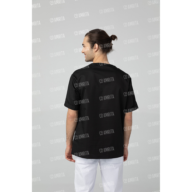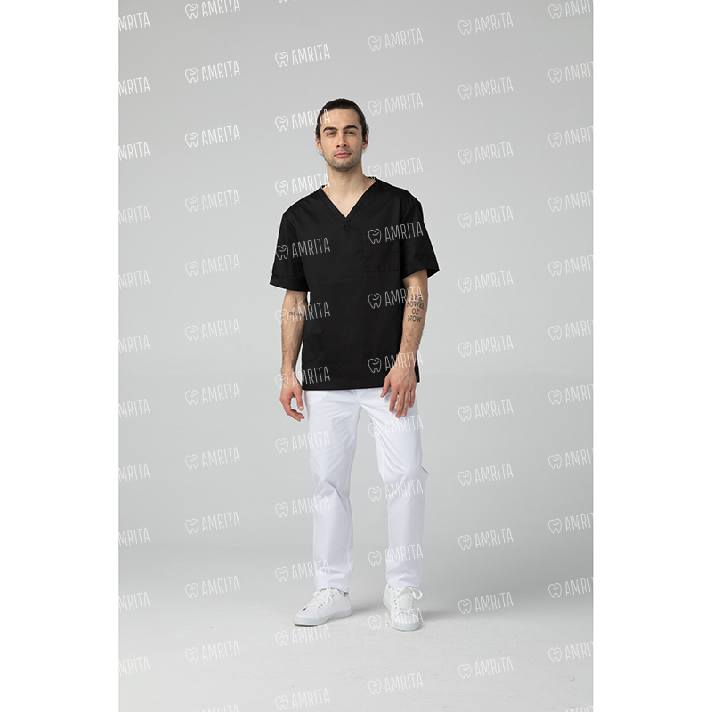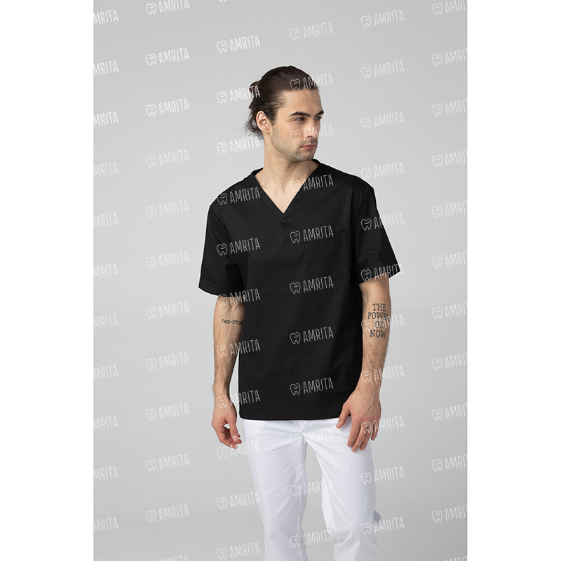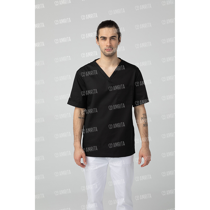 Медицинская мужская туника от бренда Dr.Nice выполнена в прямом фасоне с коротким рукавом и V-образным вырезом. Изделие дополняет один нагрудный карман и разрезы в боковых швах.