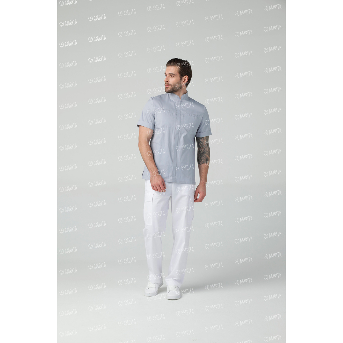 Медицинская мужская рубашка бренда Dr.Nice выполнена в современном крое с воротником-стойкой и с короткими рукавами. Модель с супатной застежкой на молнии и имеет два нагрудных кармана и два боковых.