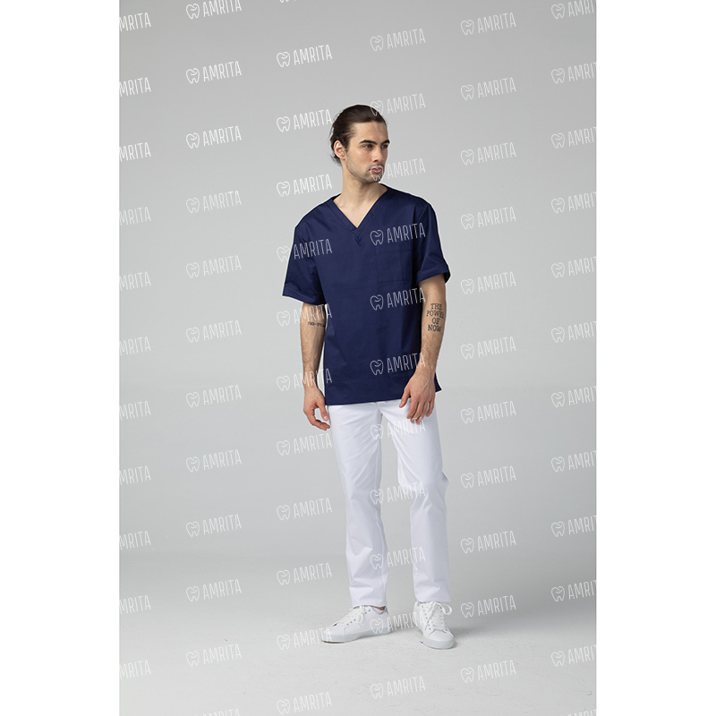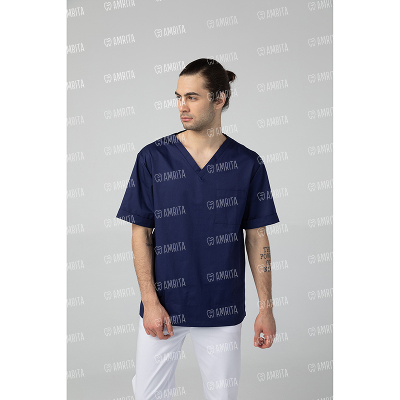 Медицинская мужская туника от бренда Dr.Nice выполнена в прямом фасоне с коротким рукавом и V-образным вырезом. Изделие дополняет один нагрудный карман и разрезы в боковых швах.
