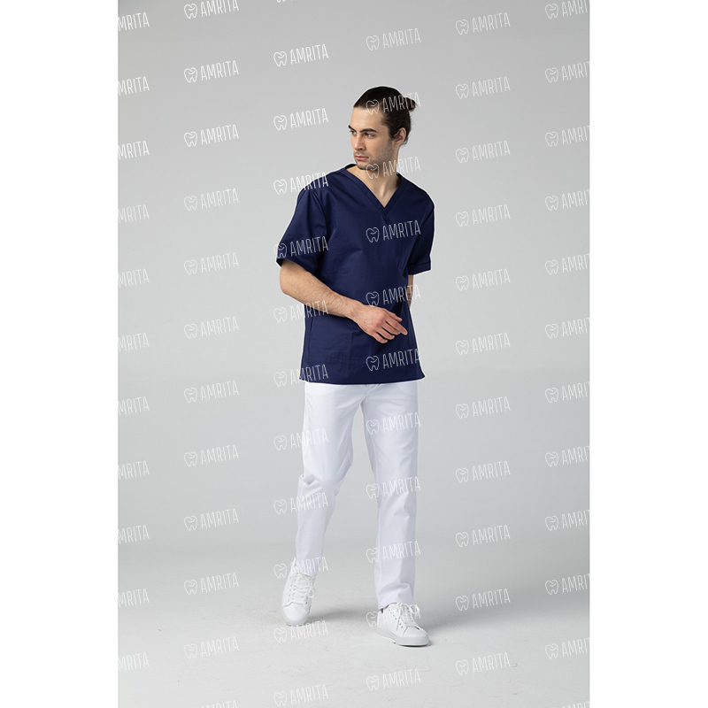 Медицинская мужская туника от бренда Dr.Nice выполнена в прямом фасоне с коротким рукавом и V-образным вырезом. Изделие дополняет один нагрудный карман и разрезы в боковых швах.