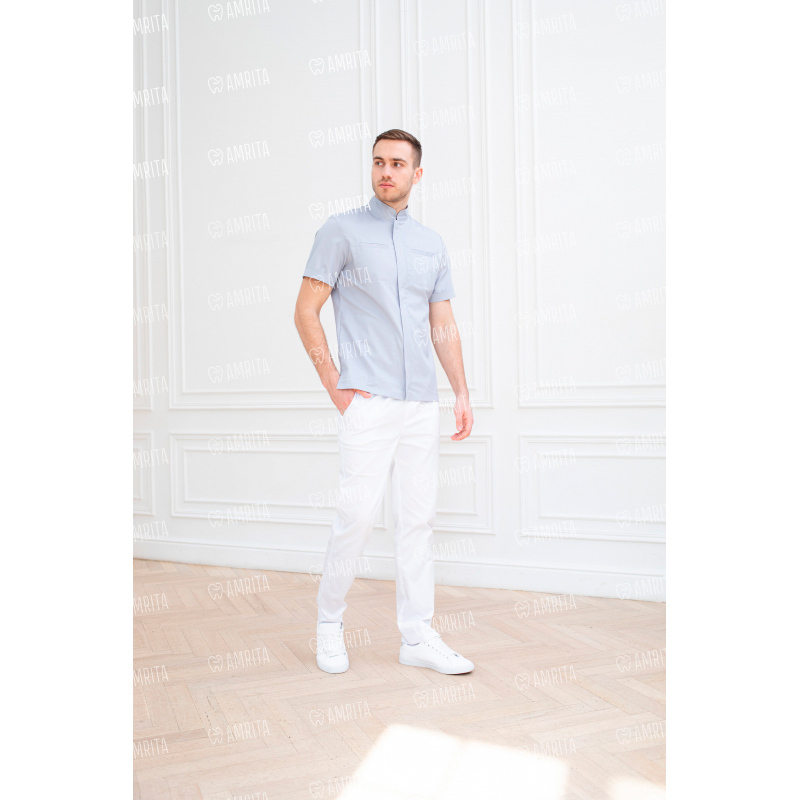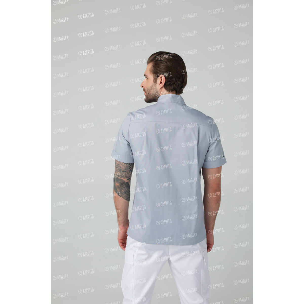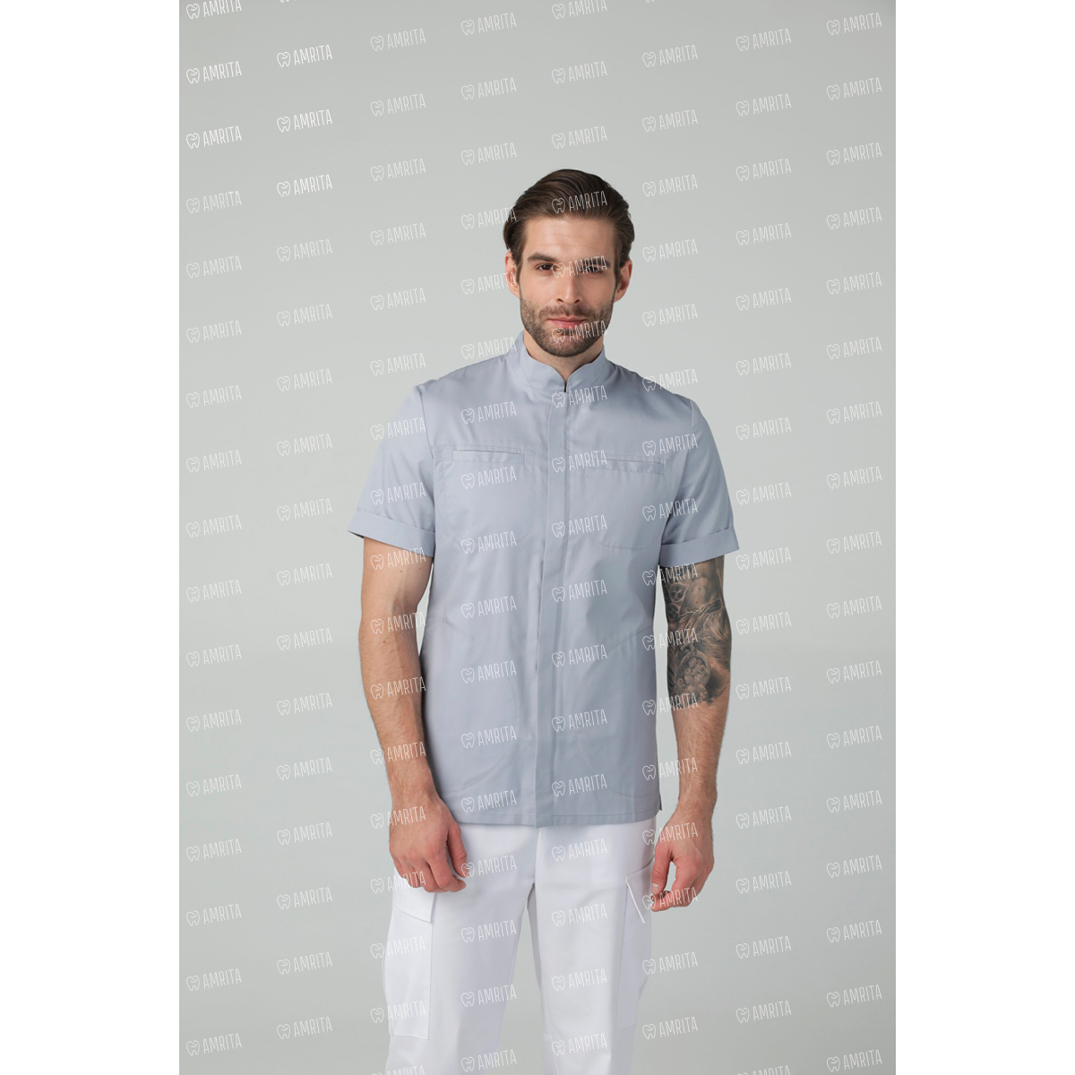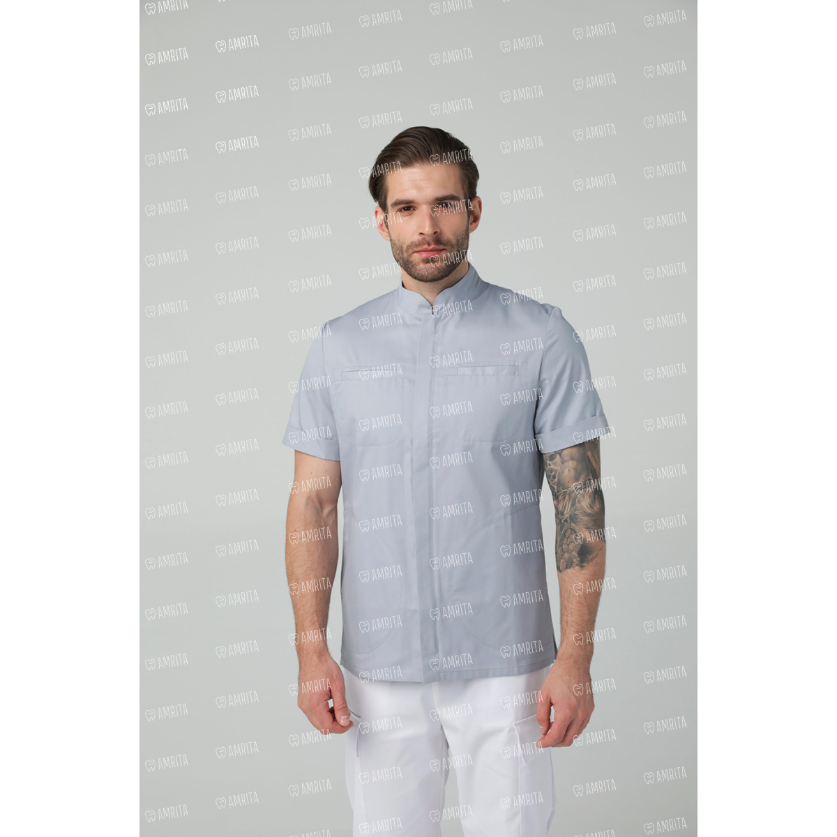 Медицинская мужская рубашка бренда Dr.Nice выполнена в современном крое с воротником-стойкой и с короткими рукавами. Модель с супатной застежкой на молнии и имеет два нагрудных кармана и два боковых.