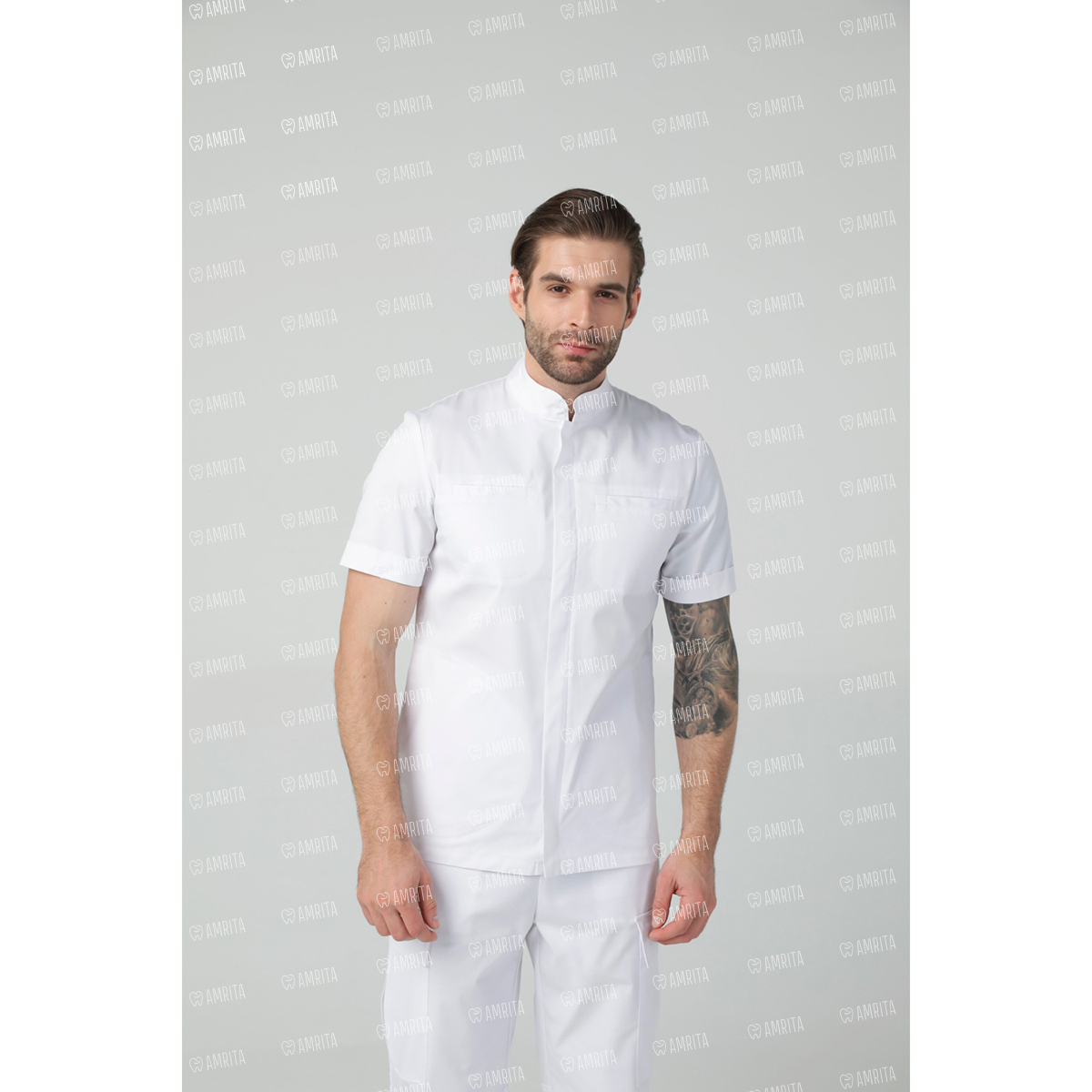 Медицинская мужская рубашка бренда Dr.Nice выполнена в современном крое с воротником-стойкой и с короткими рукавами. Модель с супатной застежкой на молнии и имеет два нагрудных кармана и два боковых.