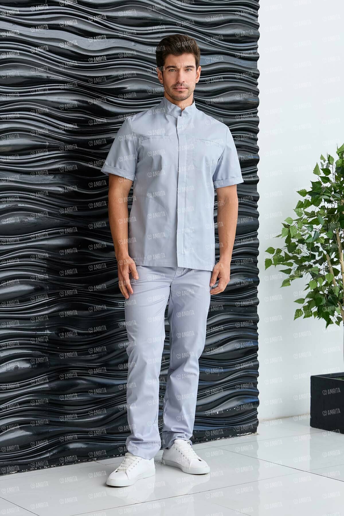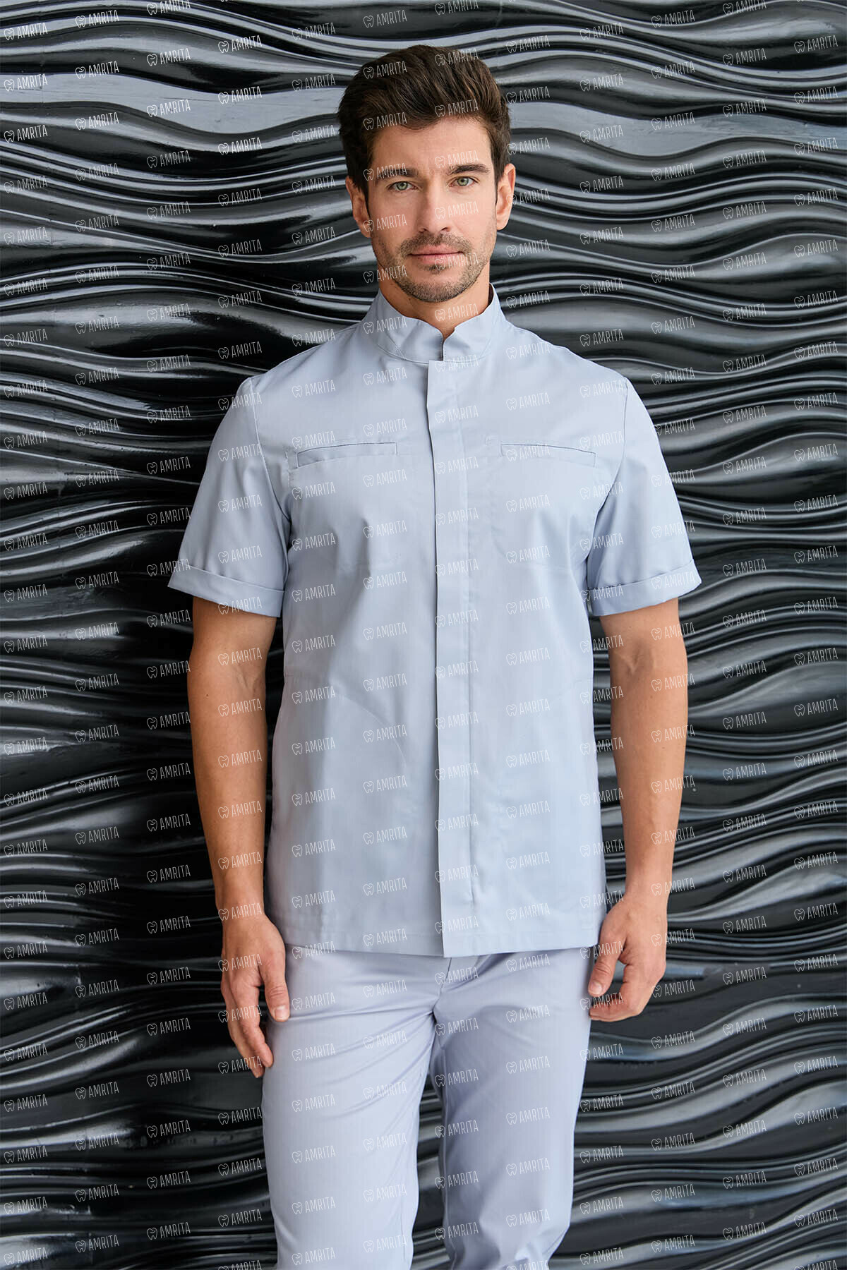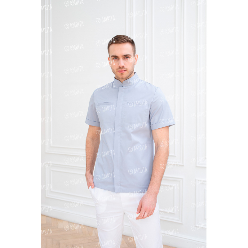 Медицинская мужская рубашка бренда Dr.Nice выполнена в современном крое с элегантным воротником-стойкой и с короткими рукавами. Модель с супатной застежкой на молнии и имеет два нагрудных кармана и два боковых.