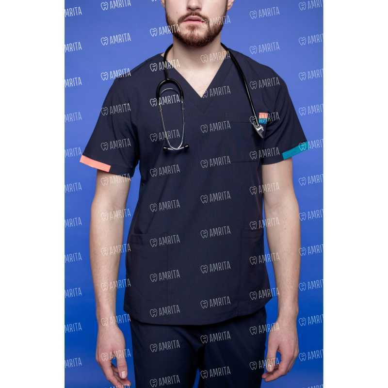 Мужская медицинская туника серии 258 Michigan от бренда PULSE имеет прямой крой, короткий рукав, разрезы по бокам и V-образный вырез. Модель дополнена тремя карманами: два накладных и один нагрудный, а также контрастными вставками на рукавах и кармане. Данное изделие доступно в разных цветовых вариантах.
