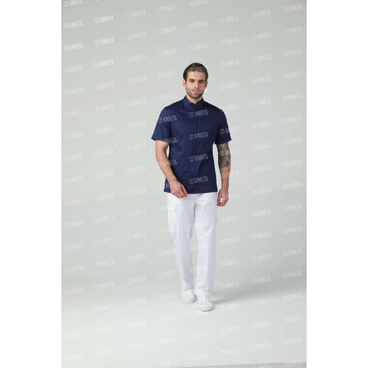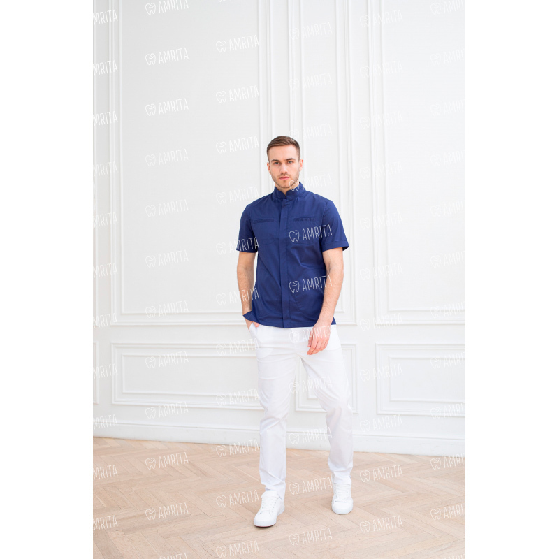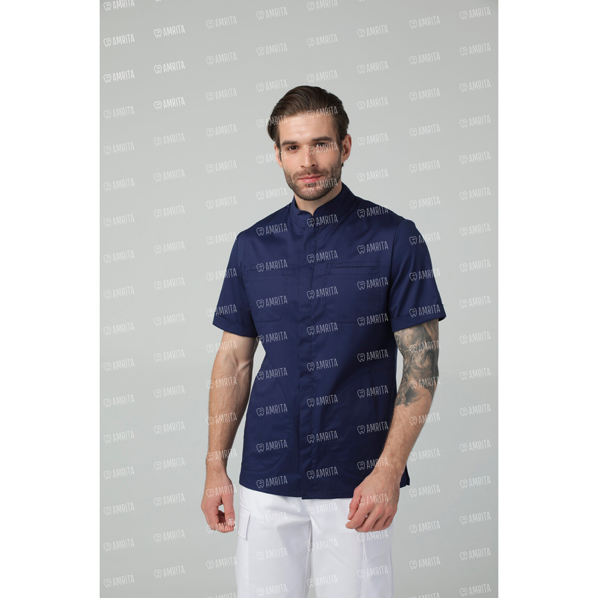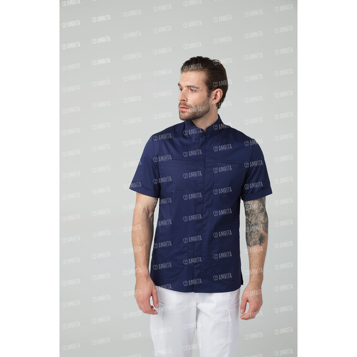 Медицинская мужская рубашка бренда Dr.Nice выполнена в современном крое с воротником-стойкой и с короткими рукавами. Модель с супатной застежкой на молнии и имеет два нагрудных кармана и два боковых.