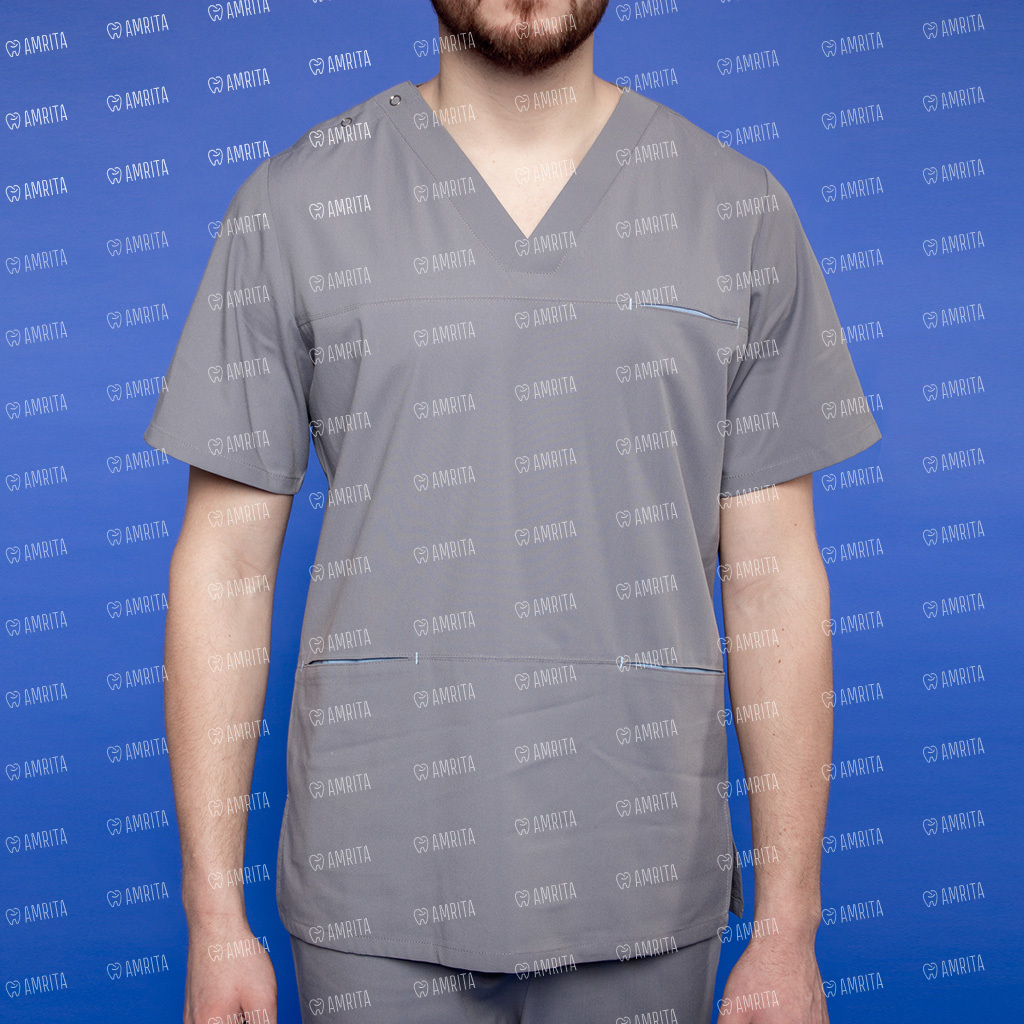 Мужская медицинская туника серии 257 Tennessee от бренда PULSE имеет прямой крой, короткий рукав, разрезы по бокам и V-образный вырез. Модель дополнена тремя прорезными карманами с яркой вставкой: два спереди и один на груди. Для удобства надевания на правом плечевом шве горловины имеется застежка на металлических кнопках. Данное изделие доступно в разных цветовых вариантах.