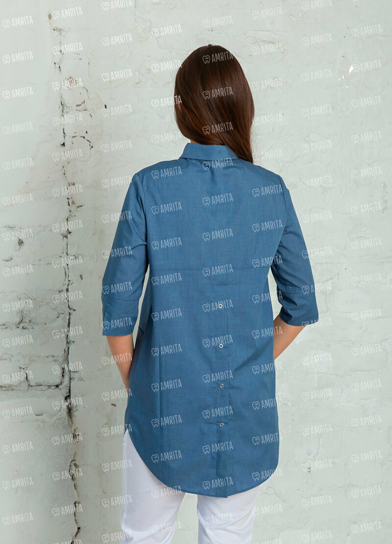 Изящный блузон "Берта" от White Wears с удлиненной задней полочкой и рукавами ¾ позволит выглядеть гармонично и произвести положительное впечатление на нового пациента. Модель свободного кроя, застегивается спереди на металлические кнопки. Для нужных мелочей предусмотрены два накладных вместительных кармана. Этот блузон станет вашей любимой вещью! Сочетайте его с брюками или юбкой, меняя образы. Помимо дизайна, преимуществом нашей модели является материал, из которого она выполнена - основная ткань: тиси (65% полиэфир, 35% хлопок). Это обеспечивает ее износоустойчивость при стирке и дезинфекции.