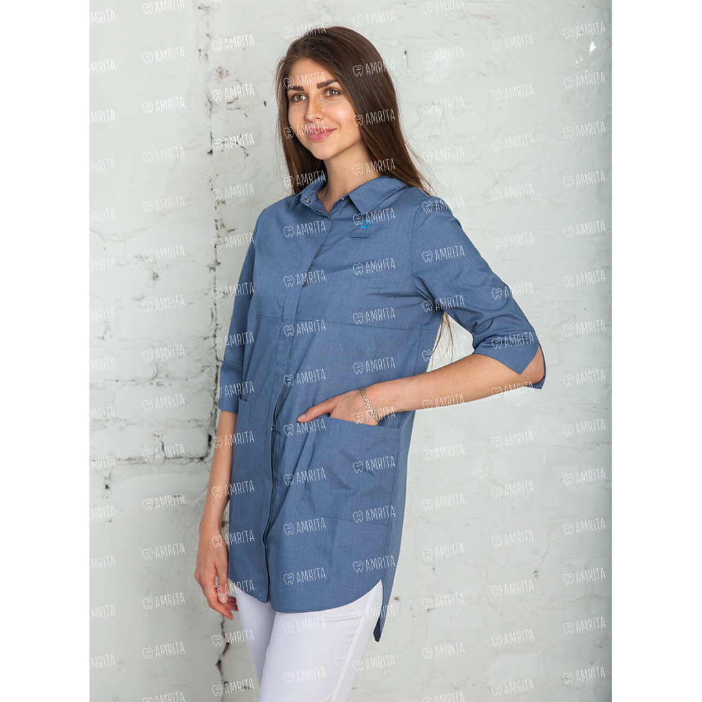 Изящный блузон "Берта" от White Wears с удлиненной задней полочкой и рукавами ¾ позволит выглядеть гармонично и произвести положительное впечатление на нового пациента. Модель свободного кроя, застегивается спереди на металлические кнопки. Для нужных мелочей предусмотрены два накладных вместительных кармана. Этот блузон станет вашей любимой вещью! Сочетайте его с брюками или юбкой, меняя образы. Помимо дизайна, преимуществом нашей модели является материал, из которого она выполнена - основная ткань: тиси (65% полиэфир, 35% хлопок). Это обеспечивает ее износоустойчивость при стирке и дезинфекции.
