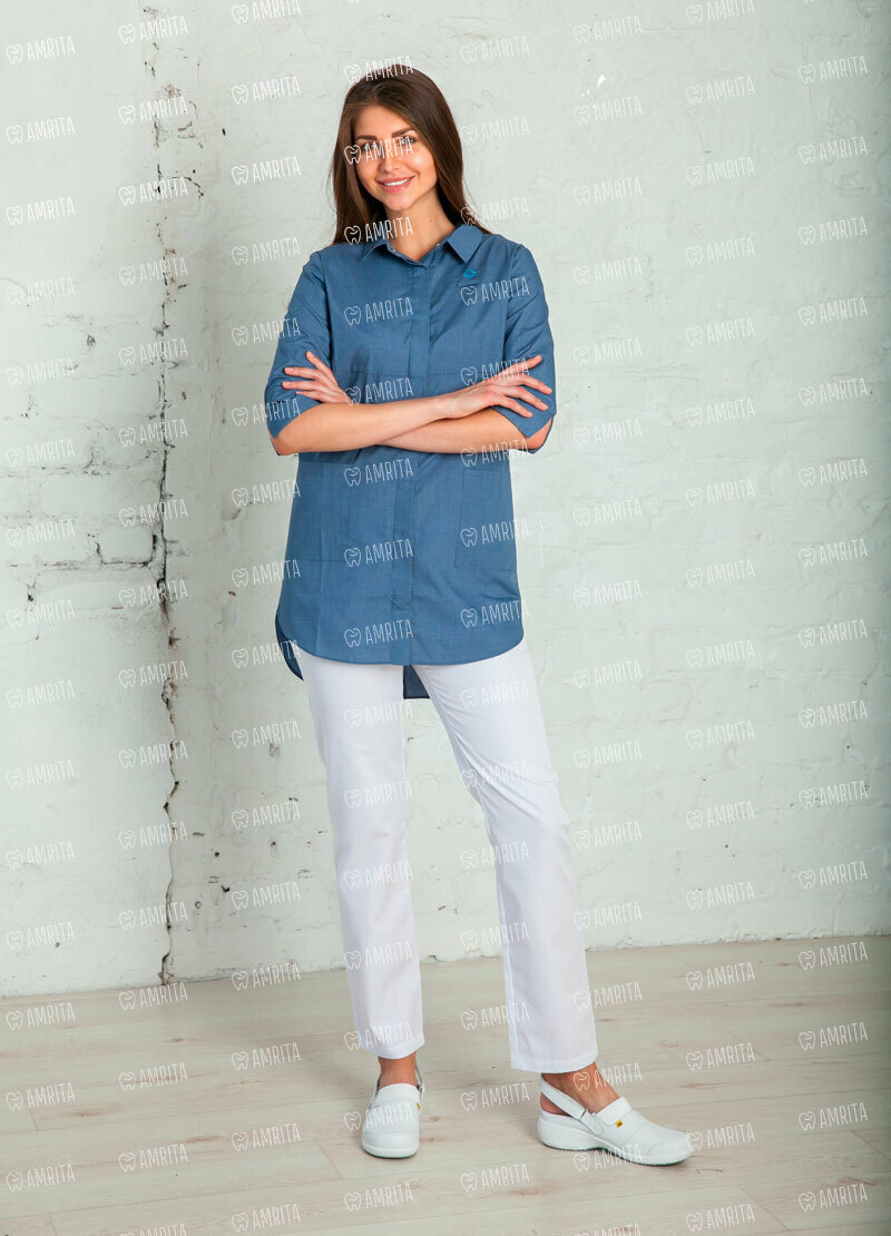 Изящный блузон "Берта" от White Wears с удлиненной задней полочкой и рукавами ¾ позволит выглядеть гармонично и произвести положительное впечатление на нового пациента. Модель свободного кроя, застегивается спереди на металлические кнопки. Для нужных мелочей предусмотрены два накладных вместительных кармана. Этот блузон станет вашей любимой вещью! Сочетайте его с брюками или юбкой, меняя образы. Помимо дизайна, преимуществом нашей модели является материал, из которого она выполнена - основная ткань: тиси (65% полиэфир, 35% хлопок). Это обеспечивает ее износоустойчивость при стирке и дезинфекции.