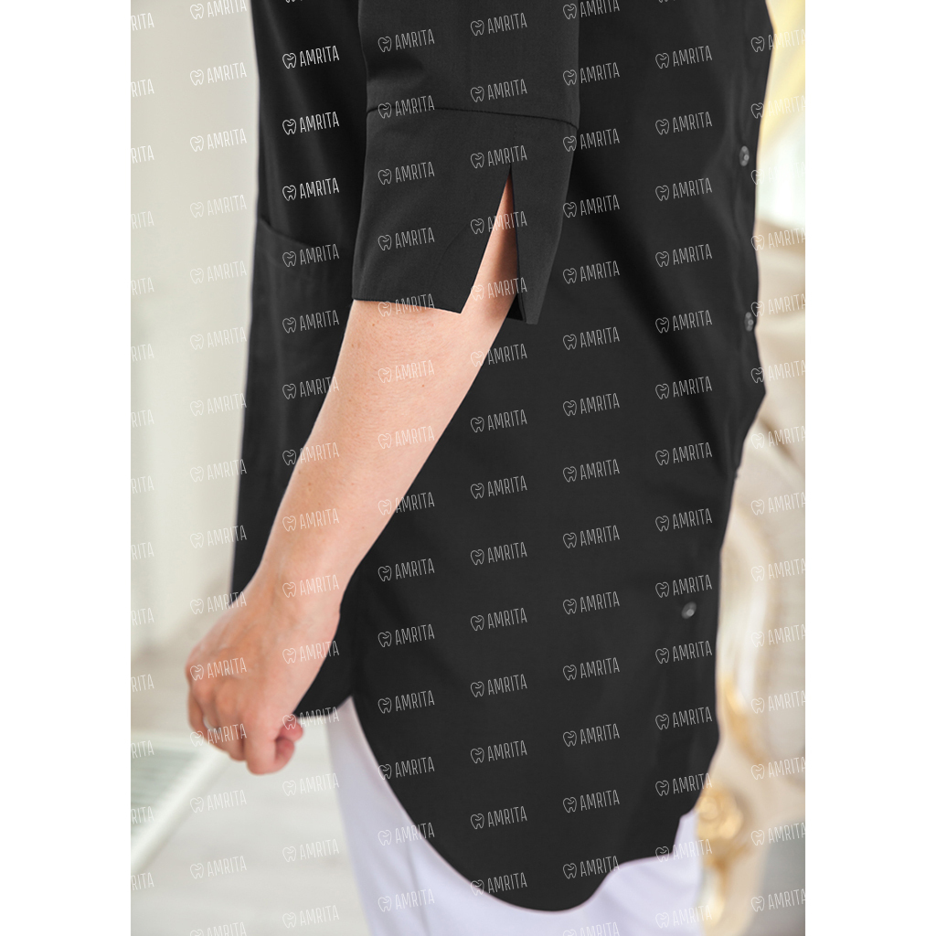 Изящный блузон "Берта" от White Wears с удлиненной задней полочкой и рукавами ¾ позволит выглядеть гармонично и произвести положительное впечатление на нового пациента. Модель свободного кроя, застегивается спереди на металлические кнопки. Для нужных мелочей предусмотрены два накладных вместительных кармана. Этот блузон станет вашей любимой вещью! Сочетайте его с брюками или юбкой, меняя образы. Помимо дизайна, преимуществом нашей модели является материал, из которого она выполнена - основная ткань: сатори (50% хлопок, 50% полиэфир). Это обеспечивает ее износоустойчивость при стирке и дезинфекции.