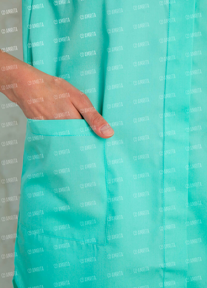 Изящный блузон "Берта" от White Wears с удлиненной задней полочкой и рукавами ¾ позволит выглядеть гармонично и произвести положительное впечатление на нового пациента. Модель свободного кроя, застегивается спереди на металлические кнопки. Для нужных мелочей предусмотрены два накладных вместительных кармана. Этот блузон станет вашей любимой вещью! Сочетайте его с брюками или юбкой, меняя образы. Помимо дизайна, преимуществом нашей модели является материал, из которого она выполнена - основная ткань: тиси (65% полиэфир, 35% хлопок). Это обеспечивает ее износоустойчивость при стирке и дезинфекции.