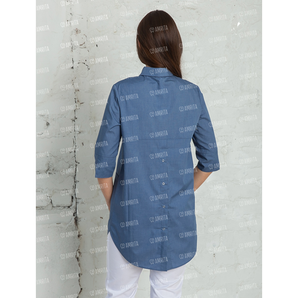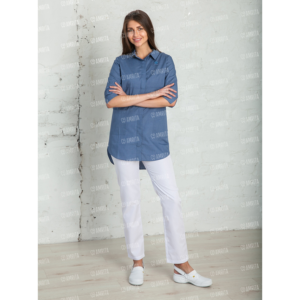 Изящный блузон "Берта" от White Wears с удлиненной задней полочкой и рукавами ¾ позволит выглядеть гармонично и произвести положительное впечатление на нового пациента. Модель свободного кроя, застегивается спереди на металлические кнопки. Для нужных мелочей предусмотрены два накладных вместительных кармана. Этот блузон станет вашей любимой вещью! Сочетайте его с брюками или юбкой, меняя образы. Помимо дизайна, преимуществом нашей модели является материал, из которого она выполнена - основная ткань: тиси (65% полиэфир, 35% хлопок). Это обеспечивает ее износоустойчивость при стирке и дезинфекции.