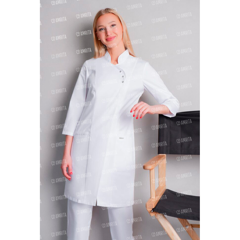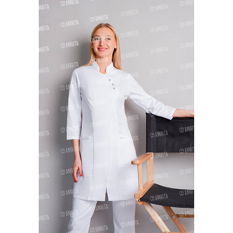 Женская медицинская блуза "Восток" имеет удобный полуприлегающий силуэт, рукав длиной 3/4, воротник-стойку и идеальную посадку. Модель дополнена двумя вместительными карманами по бокам. Асимметричная застежка на пуговицы и четыре верхние кнопки позволяет удобно надевать и снимать блузу.