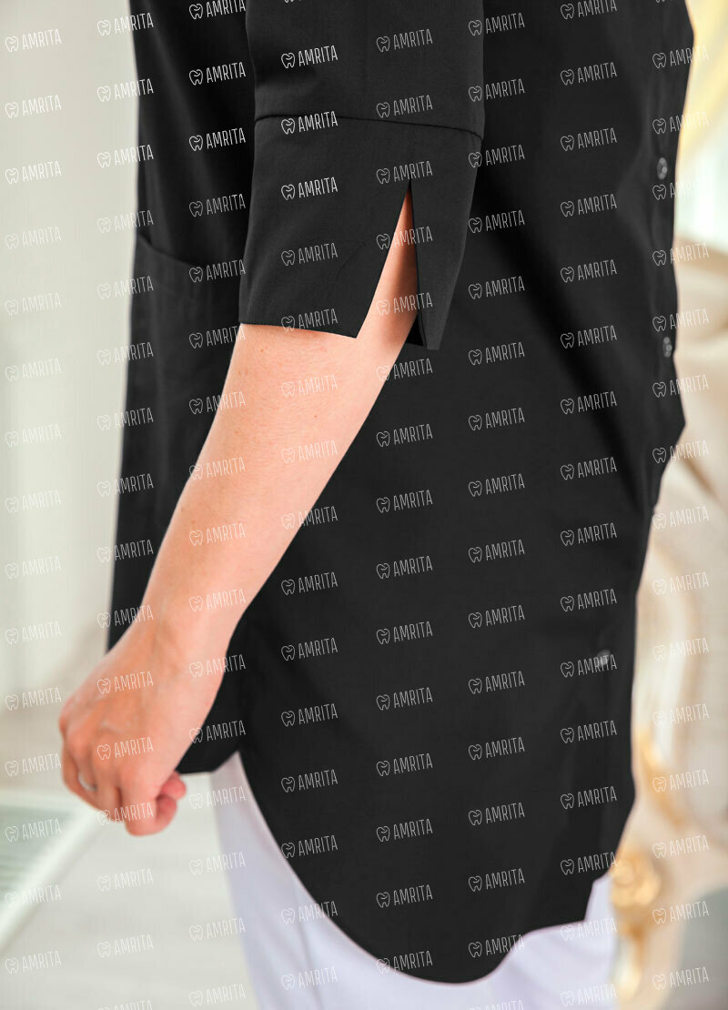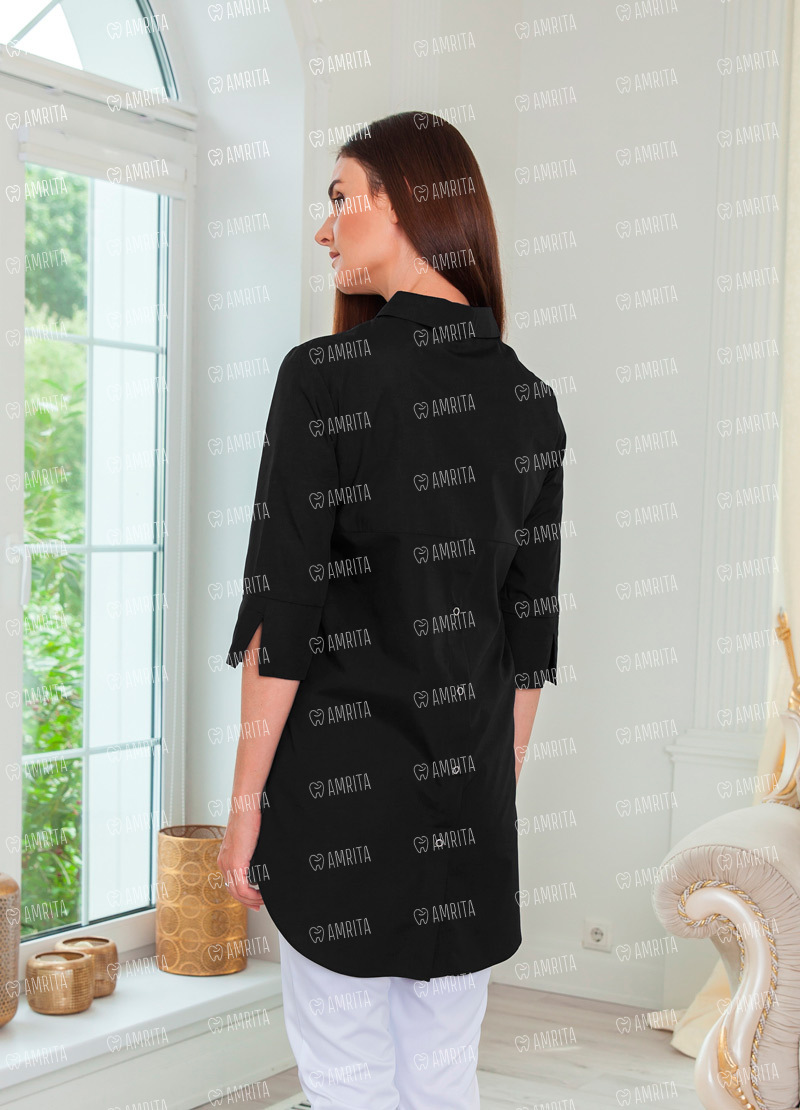 Изящный блузон "Берта" от White Wears с удлиненной задней полочкой и рукавами ¾ позволит выглядеть гармонично и произвести положительное впечатление на нового пациента. Модель свободного кроя, застегивается спереди на металлические кнопки. Для нужных мелочей предусмотрены два накладных вместительных кармана. Этот блузон станет вашей любимой вещью! Сочетайте его с брюками или юбкой, меняя образы. Помимо дизайна, преимуществом нашей модели является материал, из которого она выполнена - основная ткань: сатори (50% хлопок, 50% полиэфир). Это обеспечивает ее износоустойчивость при стирке и дезинфекции.
