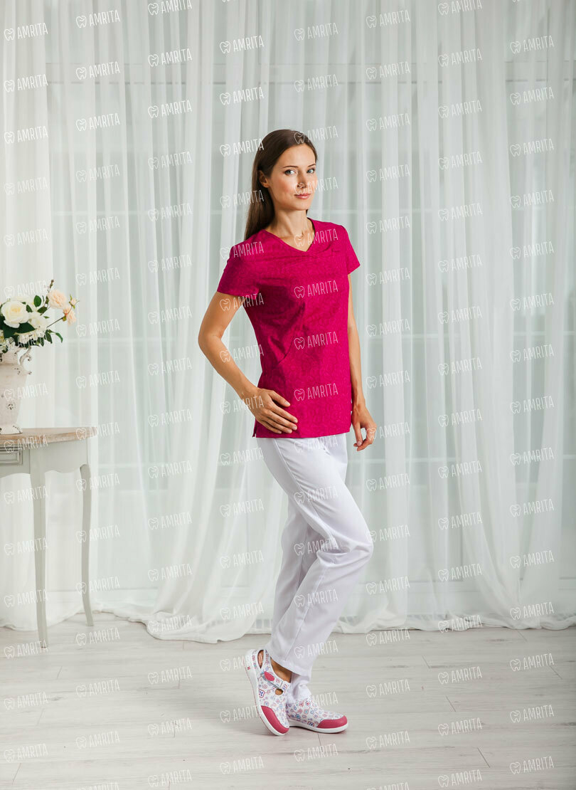 Медицинский блузон "Виктория" от бренда White Wears прямого кроя с V-образным вырезом выполнен в лаконичном и стильном дизайне. Спереди блузона имеются два больших вместительных накладных кармана и один маленький, по бокам небольшие разрезы. За счет своего кроя данная модель отлично сочетается с различными брюками и юбками, тем самым можно менять постоянно свой образ.