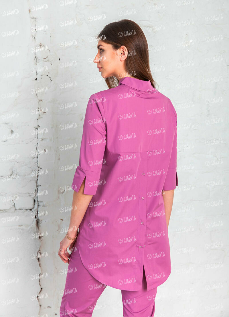 Изящный блузон "Берта" от White Wears с удлиненной задней полочкой и рукавами ¾ позволит выглядеть гармонично и произвести положительное впечатление на нового пациента. Модель свободного кроя, застегивается спереди на металлические кнопки. Для нужных мелочей предусмотрены два накладных вместительных кармана. Этот блузон станет вашей любимой вещью! Сочетайте его с брюками или юбкой, меняя образы. Помимо дизайна, преимуществом нашей модели является материал, из которого она выполнена - основная ткань: тиси (65% полиэфир, 35% хлопок). Это обеспечивает ее износоустойчивость при стирке и дезинфекции.