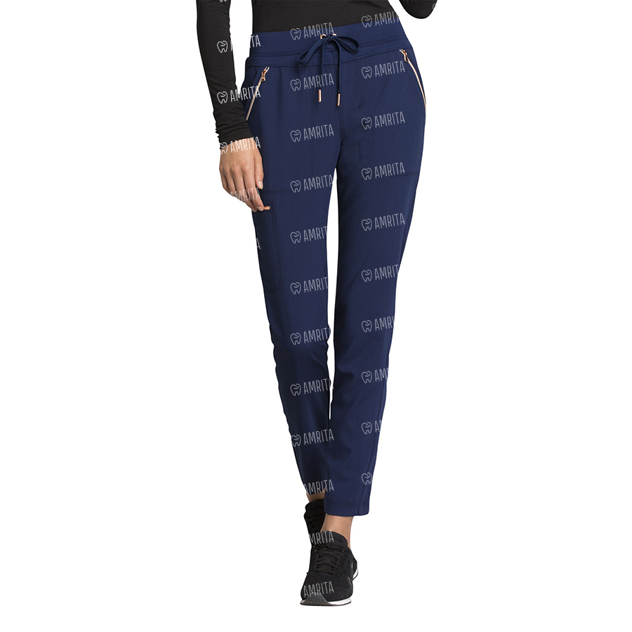 Женские брюки Cherokee CK055 со средней посадкой и зауженными штанинами на кулиске обеспечивают удобство и комфорт на протяжении всего рабочего дня. Модель имеет семь карманов: два с отрезным бочком, два на молнии, один накладной на молнии справа и два задних прорезных. Фурнитура из розового золота придает изысканный акцент.