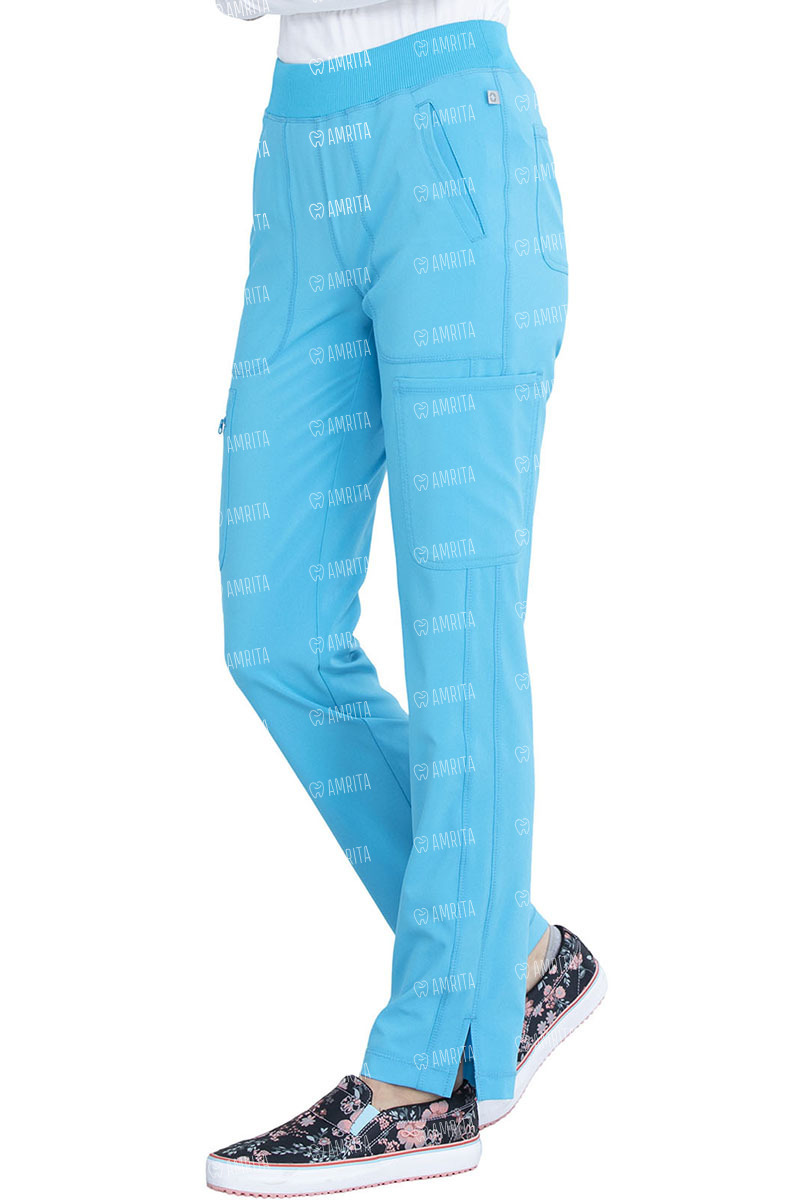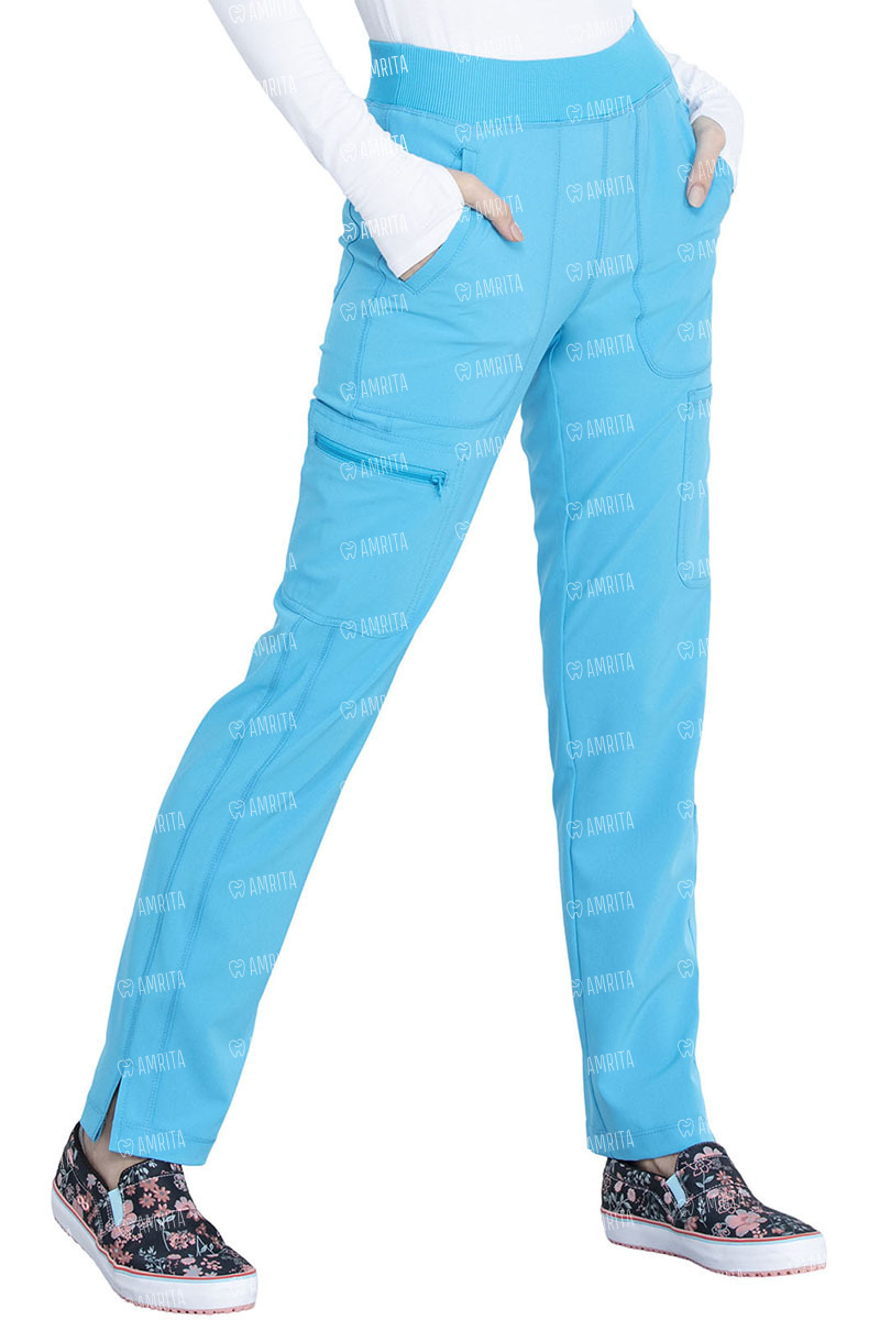 Медицинские брюки со средней посадкой и зауженными штанинами Cherokee CK065A выполнены в современном крое. Они дополнены вязанным поясом в рубчик, передними прорезными и грузовыми карманами, задними накладными карманами и боковыми разрезами на кромке для свободы движений. Современная посадка.