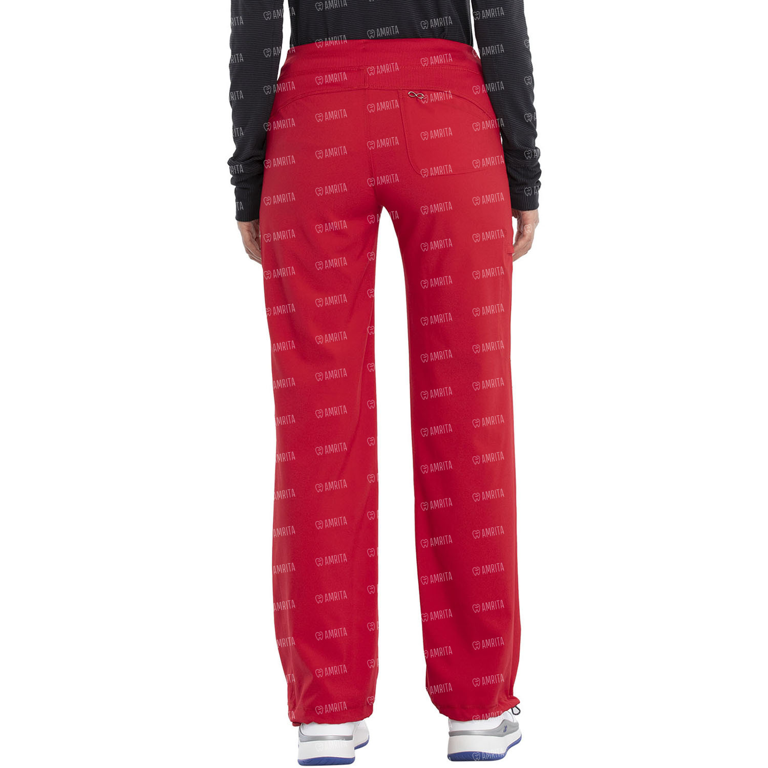Женские медицинские брюки Cherokee 1123A выполнены в прямом современном крое, имеют заниженную талию и эластичный трикотажный пояс с регулируемой кулиской. На изделие есть передние и задние трикотажные кокетки в рубчик, угловые передние карманы, швы на передних штанинах с грузовым карманом на молнии, один накладной карман сзади, а также петля для инструментов с эластичной резинкой под левым карманом.