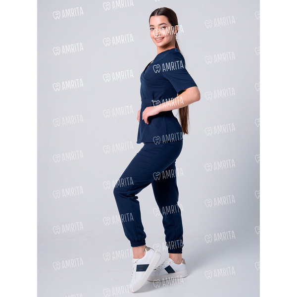 Женские медицинские брюки-джоггеры бренда Mariita имееют зауженный к низу крой с манжетами на резинке. Модель дополнена двумя боковыми карманами.