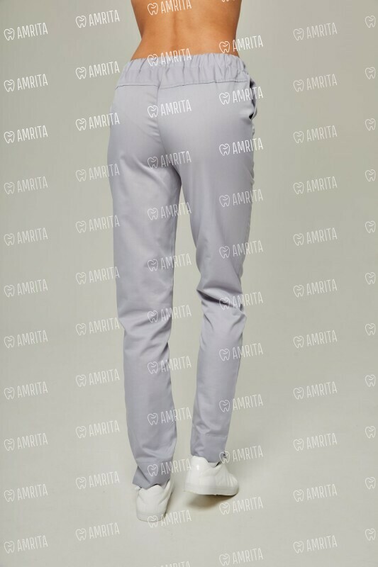 Брюки медицинские прямого кроя с эластичным поясом на резинке. Модель дополнена карманами в боковых швах, разрезами внизу и бантом из репсовой ленты на поясе.