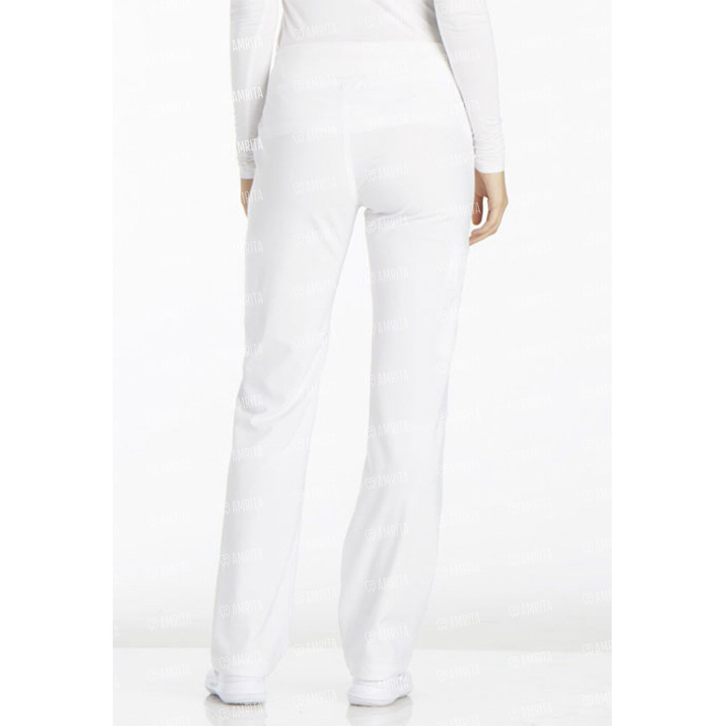 Медицинские женские брюки Cherokee CK002 выполнены в современном крое со средней посадкой и прямыми штанинами. У изделия имеется удобный трикотажный пояс, усиленный внутренней резинкой для дополнительной поддержки. Также предусмотрены передние круглые карманы с фирменными заклепками с логотипом, два прорезных грузовых кармана, потайной карман на поясе и карман для монет. У брюк есть специальный шнур, предназначенный для ношения бейджа и пластиковая застежка для ключей (внутри левого кармана).