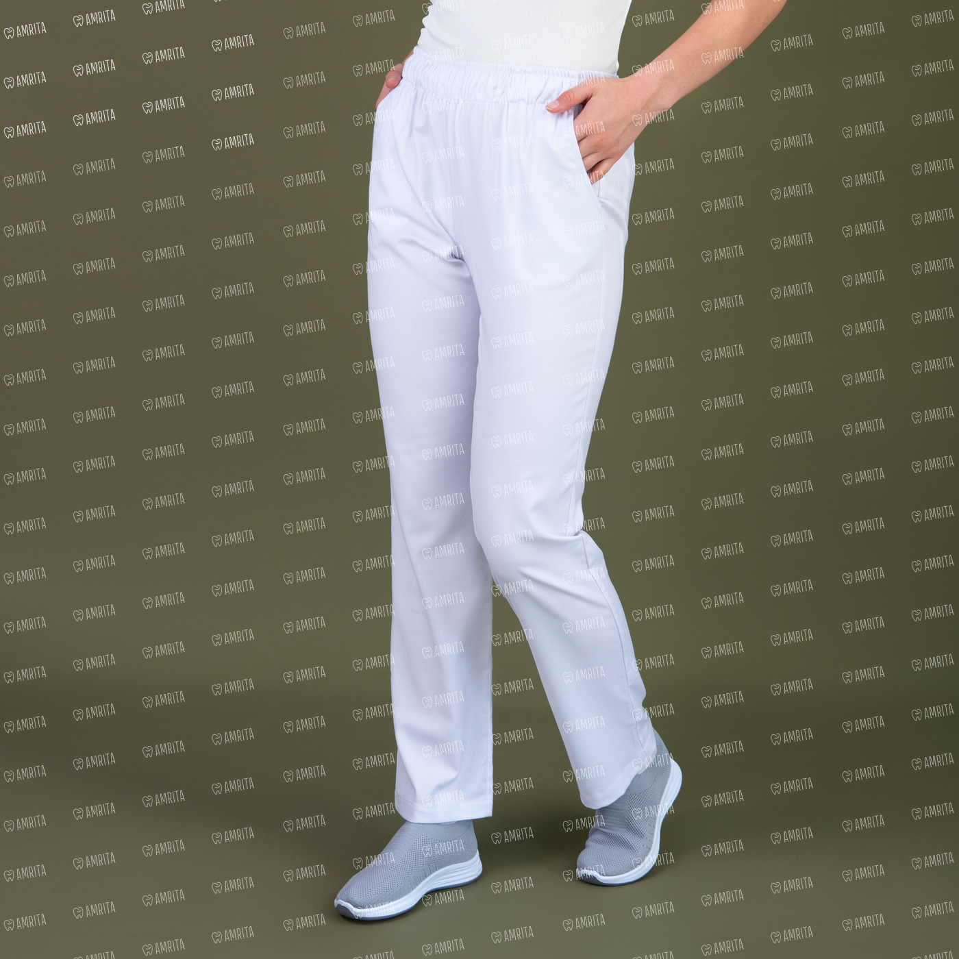 В основе дизайна — классический прямой крой, который служит безупречной базой для любого профессионального образа. Ключевым элементом, отвечающим за комфорт, выступает широкий эластичный пояс: он обеспечивает идеальную посадку на талии, не сковывая движений в течение всего дня.