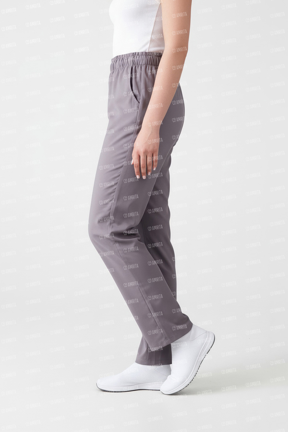 В основе дизайна — классический прямой крой, который служит безупречной базой для любого профессионального образа. Ключевым элементом, отвечающим за комфорт, выступает широкий эластичный пояс со шнурком для дополнительной регулировки: он обеспечивает идеальную посадку на талии, не сковывая движений в течение всего дня.