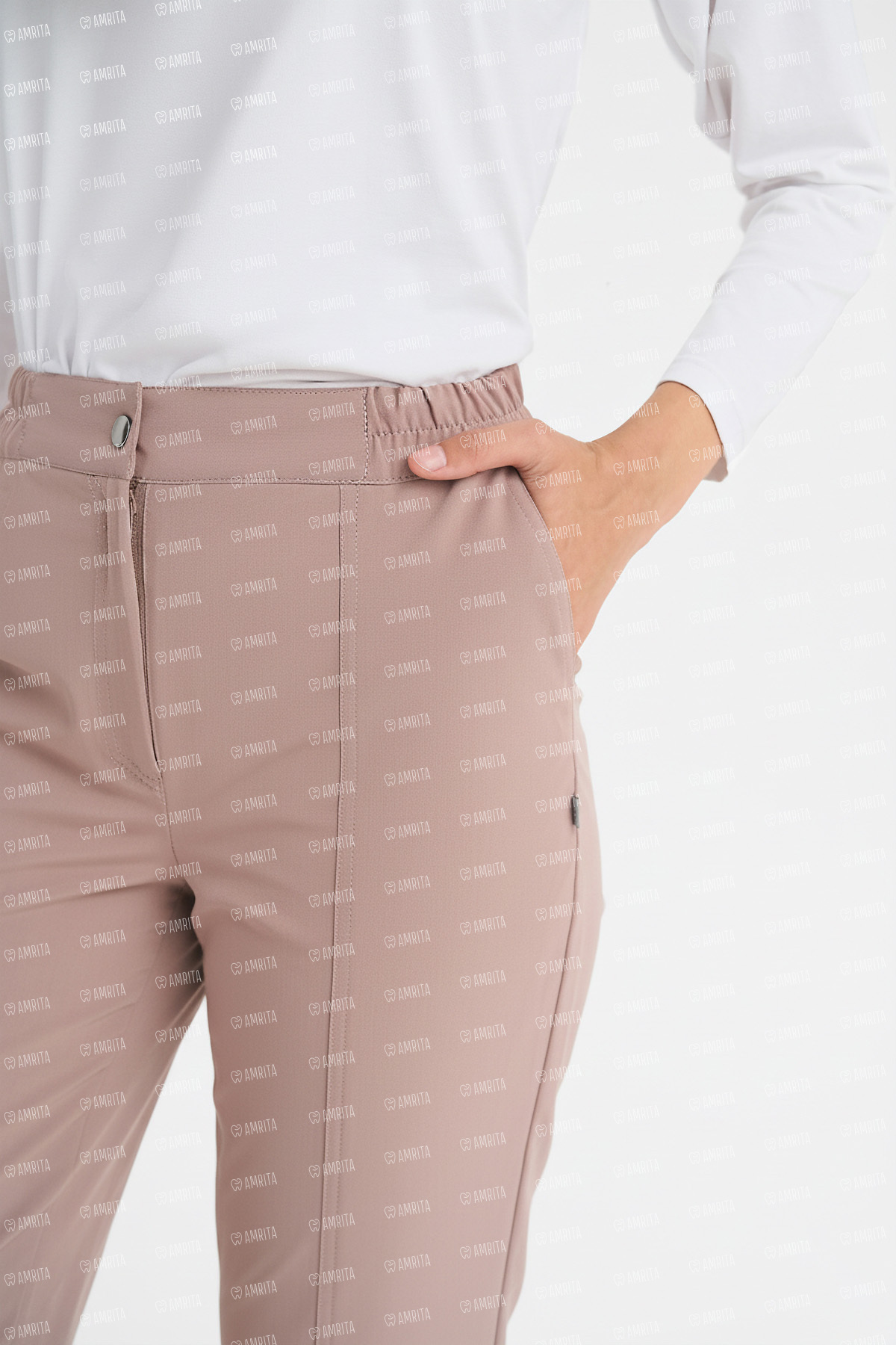- Детали: Комбинированный пояс (эластичный сзади, гладкий спереди)