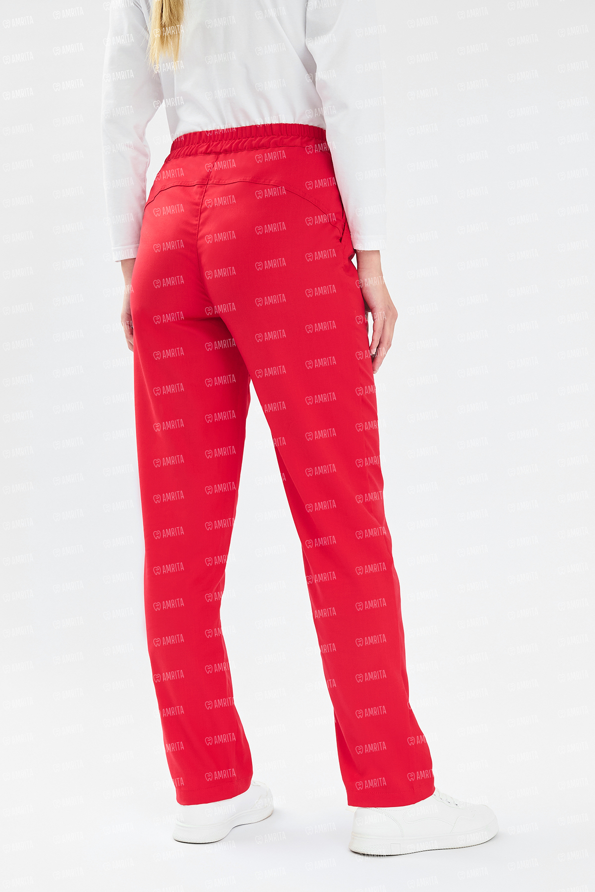 В основе дизайна — прямой крой, главным акцентом которого выступает отстроченная стрелка, формирующая безупречную вертикаль и визуально удлиняющая силуэт. Комбинированный пояс с эластичной вставкой сзади обеспечивает идеальную посадку на талии, а классическая застежка на молнию и пуговицу сохраняет строгий деловой вид.