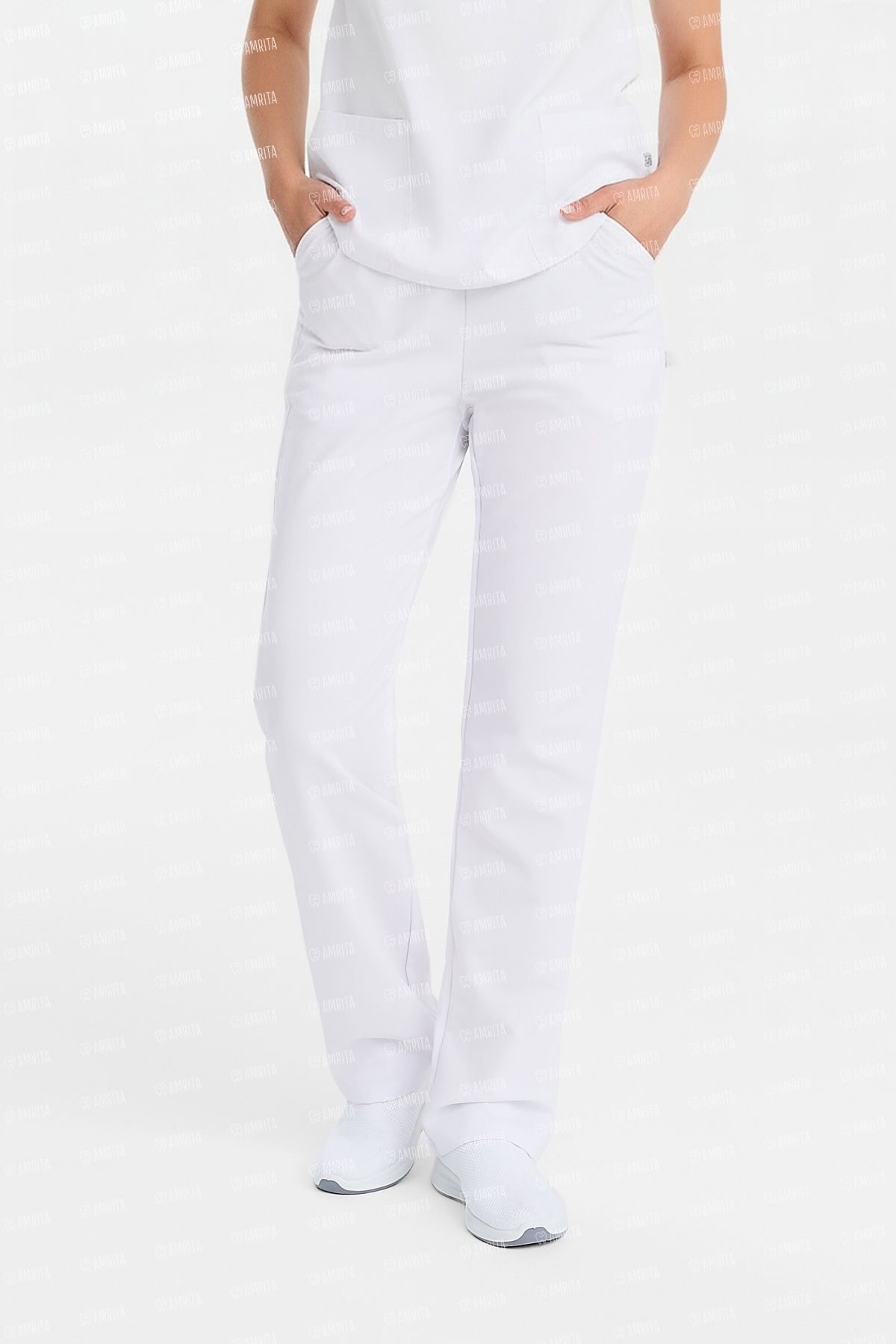В основе дизайна — классический прямой крой, который служит безупречной базой для любого профессионального образа. Ключевым элементом, отвечающим за комфорт, выступает широкий эластичный пояс со шнурком для дополнительной регулировки: он обеспечивает идеальную посадку на талии, не сковывая движений в течение всего дня.