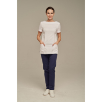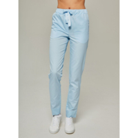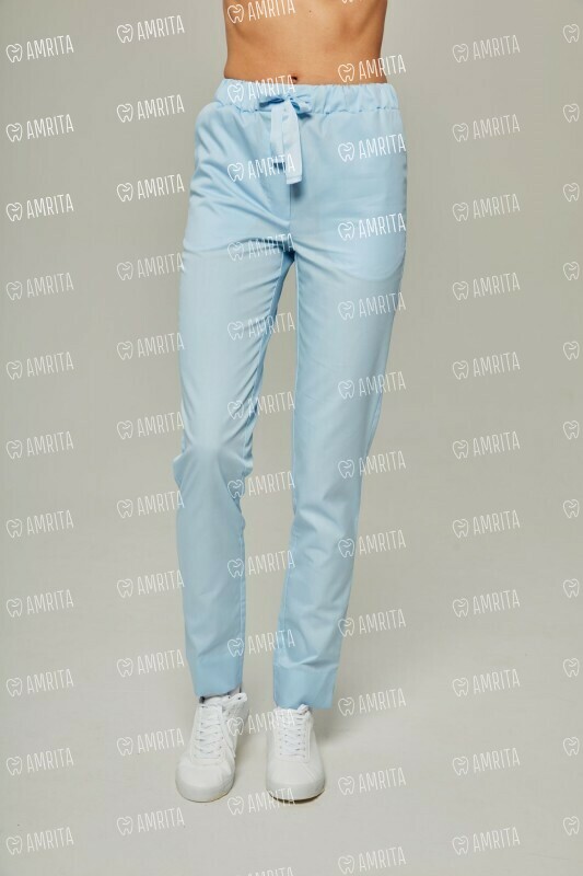 Брюки медицинские прямого кроя с эластичным поясом на резинке. Модель дополнена карманами в боковых швах, разрезами внизу и бантом из репсовой ленты на поясе.