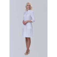 Женский медицинский халат 206 модели имеет приталенный крой выше колена и длину рукава 3/4. Рельефные вертикальные швы по спинке и полочке изделия зрительно вытянут силуэт. Ярким акцентом в данной модели выступает тонкий кант. Он обрамляет воротник, манжеты рукавов и карманы. Цвет канта Вы можете выбрать по своему усмотрению. Воротник-стойка придают образу строгости и элегантности.