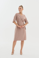 В основе дизайна — чистые линии и отсутствие визуального шума. Крой на запáх формирует женственный силуэт «песочные часы» и красивую линию декольте. Стильная металлическая пряжка на талии выполняет двойную функцию: надежно фиксирует посадку по фигуре, а также служит лаконичным украшением. Рукав ¾ — практичное решение, которое не мешает при выполнении медицинских манипуляций.
