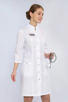Элегантный и функциональный медицинский женский халат, сочетающий в себе стиль и комфорт.