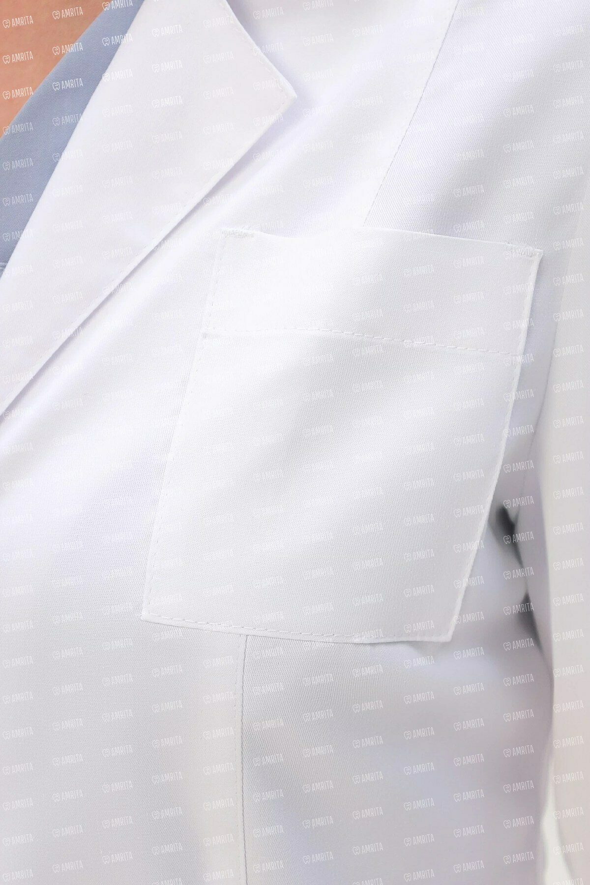 - Практичность и комфорт: Халат оснащен тремя накладными карманами (нагрудным и двумя боковыми) для необходимых в работе вещей. Ткань устойчива к сминанию и сохраняет форму в течение всей смены.