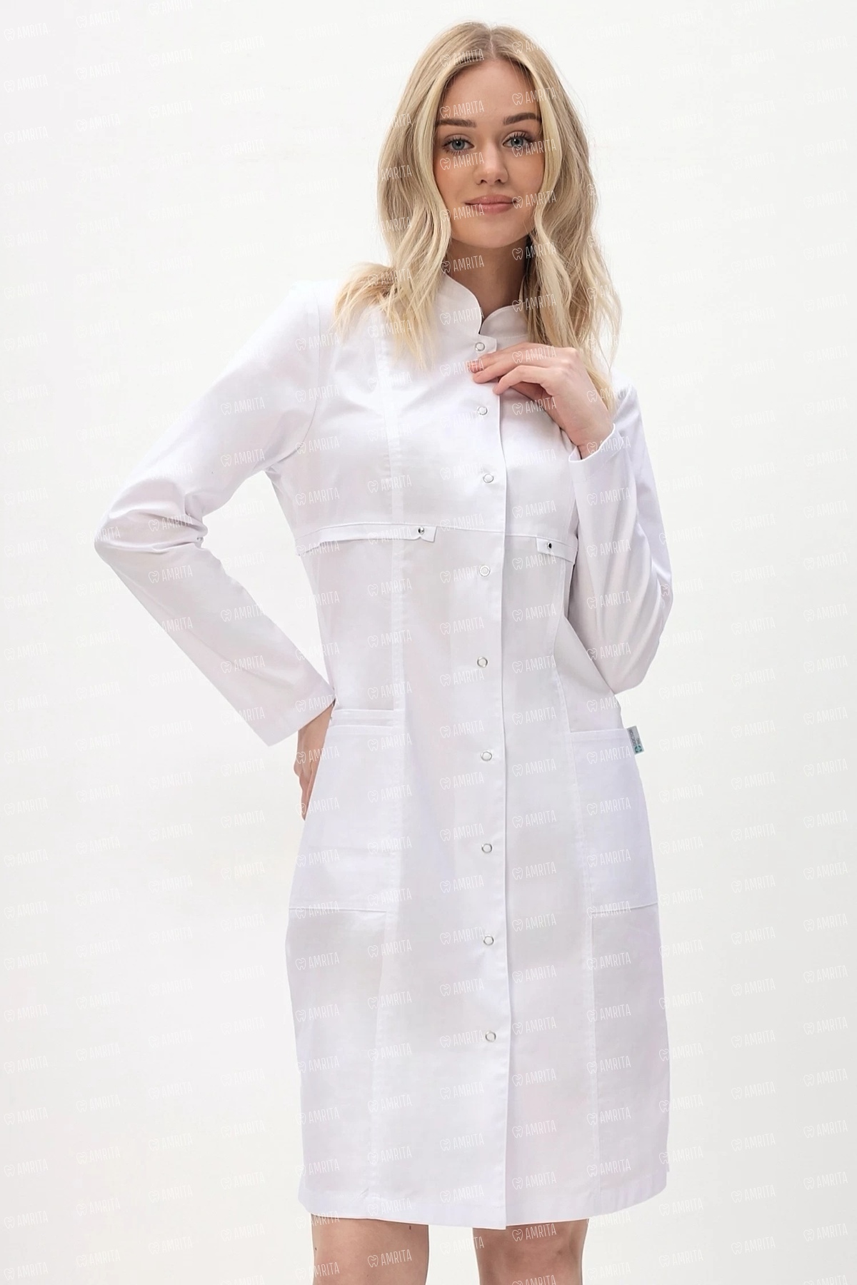 - Ткань Ultra: Высокое содержание хлопка (55%) позволяет коже дышать в течение всей смены. Добавление полиэстера и спандекса делает ткань эластичной, износостойкой и устойчивой к сминанию. Халат сохраняет форму и белизну даже после множества стирок.