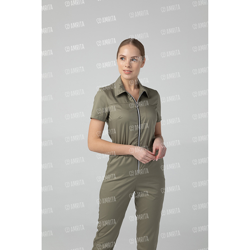 Женский медицинский комбинезон Dr.Nice выполнен в оригинальном стиле с застежкой-молнией спереди, отложным воротником и коротким рукавом. Модель дополняет два боковых кармана и резинка по линии талии.