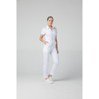 Женский медицинский комбинезон Dr.Nice выполнен в оригинальном стиле с застежкой-молнией спереди, отложным воротником и коротким рукавом. Модель дополняет два боковых кармана и резинка по линии талии.