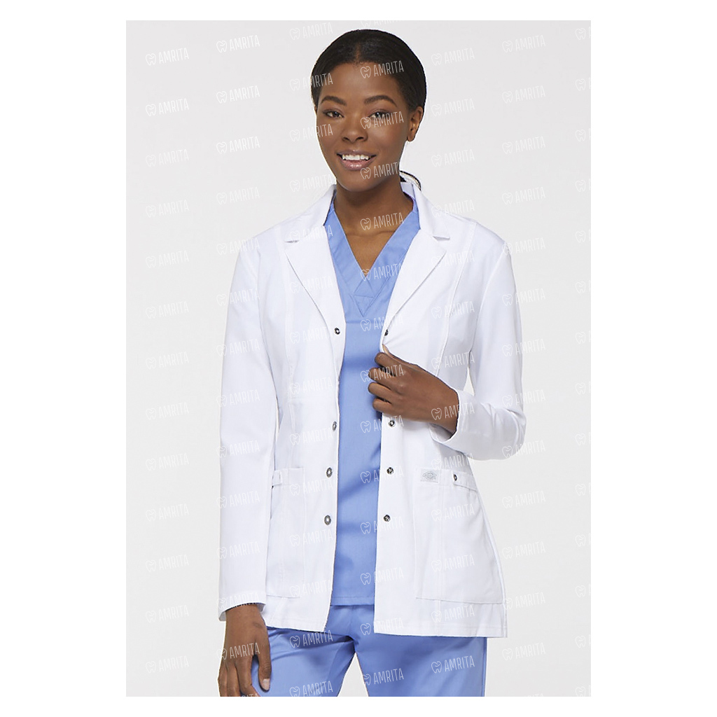 Женский медицинский пиджак Dickies 82400 имеет современный крой с зазубренными лацканами. Модель дополнена застежкой с логотипом спереди, швами спереди, сзади и на талии для идеальной посадки. Также, имеются два накладных кармана с отделениями для ручек и петлями для инструментов.