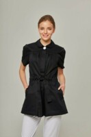Медицинская куртка с коротким рукавом от бренда Dr.Nice имеет красивый округлый воротник и пояс-сборку на талии, что придает образу женственности. Модель дополнена карманами в боковых швах, сзади разрез-шлица.