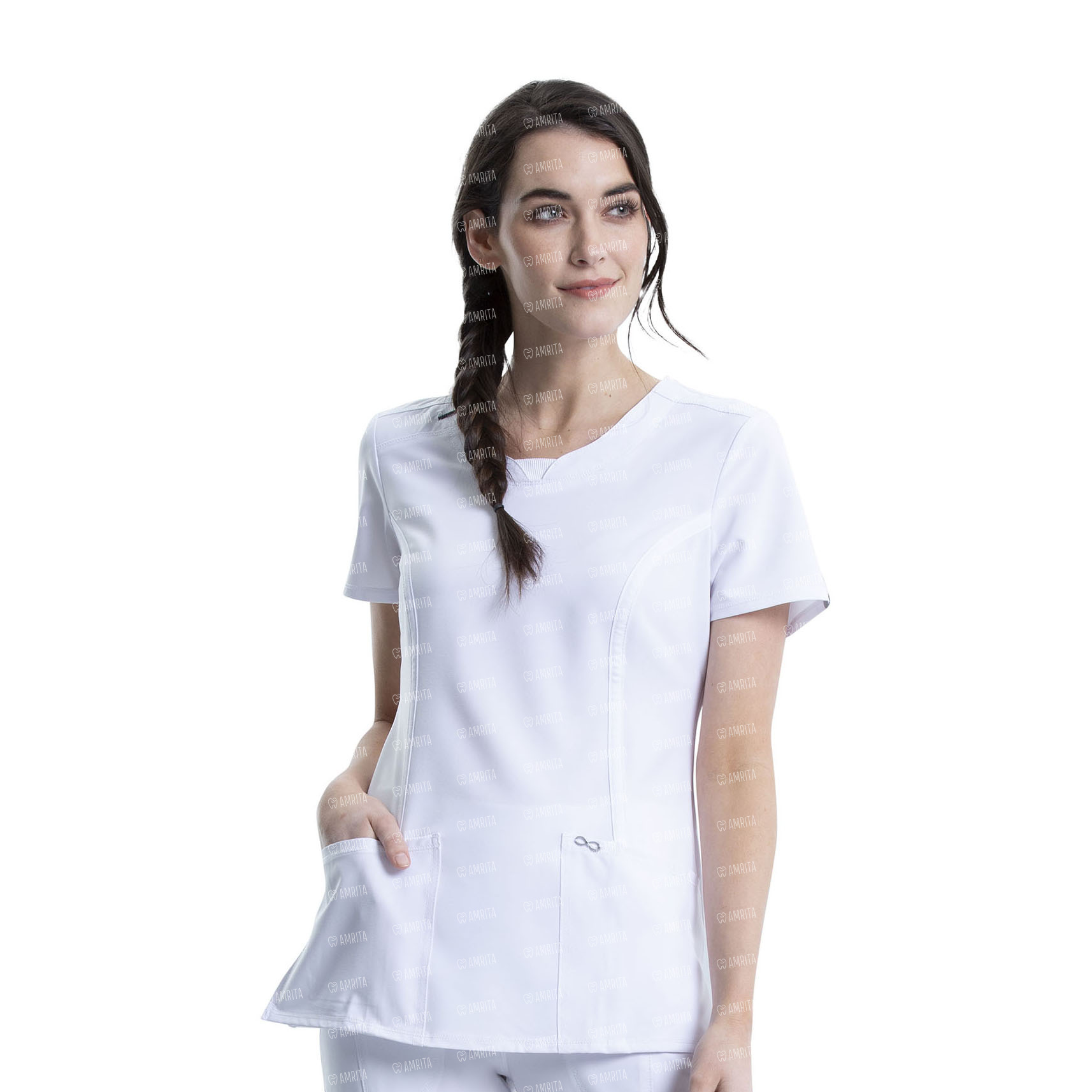 - Удобная эластичная ткань поплина и сверхэластичный трикотаж в рубчик - идеальное сочетание для профессионалов в области здравоохранения