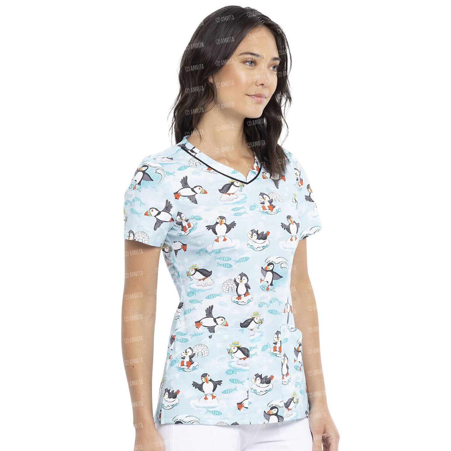 Женский медицинский топ Cherokee CK646 выполнен в современном стиле с V-образным округлым вырезом. У изделия есть два передних накладных кармана, карман для мобильного телефона, вытачки на груди, вытачки сзади и разрезы по бокам.