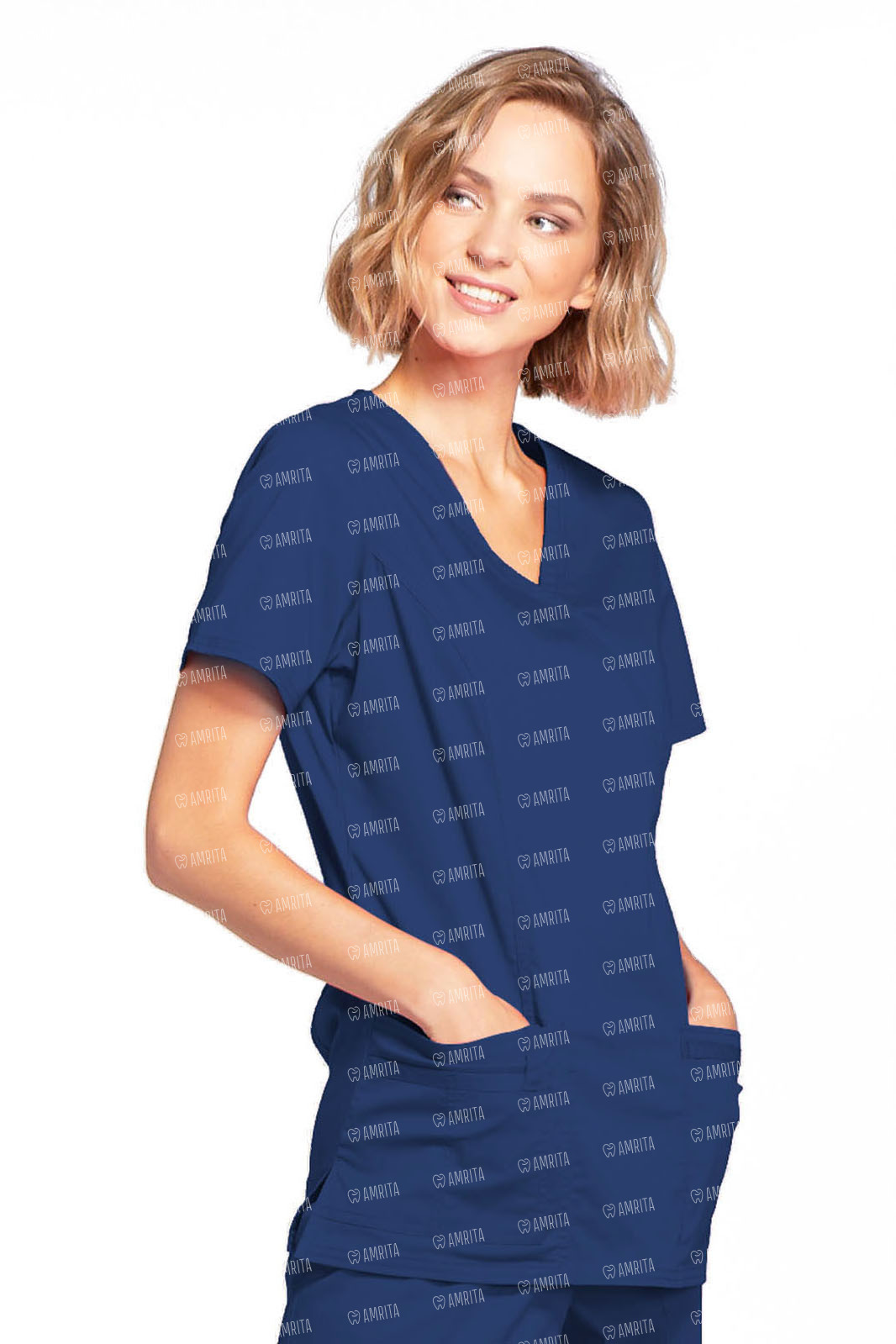 Женский медицинский топ Cherokee 4728 из коллекции WW Core Stretch — это идеальный баланс элегантного дизайна, комфорта и продуманной функциональности. Модель выполнена из ультрамягкой и дышащей смесовой ткани твилового переплетения (55% хлопок, 42% полиэстер, 3% спандекс). Благодаря добавлению спандекса, ткань эластична в двух направлениях, что обеспечивает исключительную свободу движений в течение всего рабочего дня.