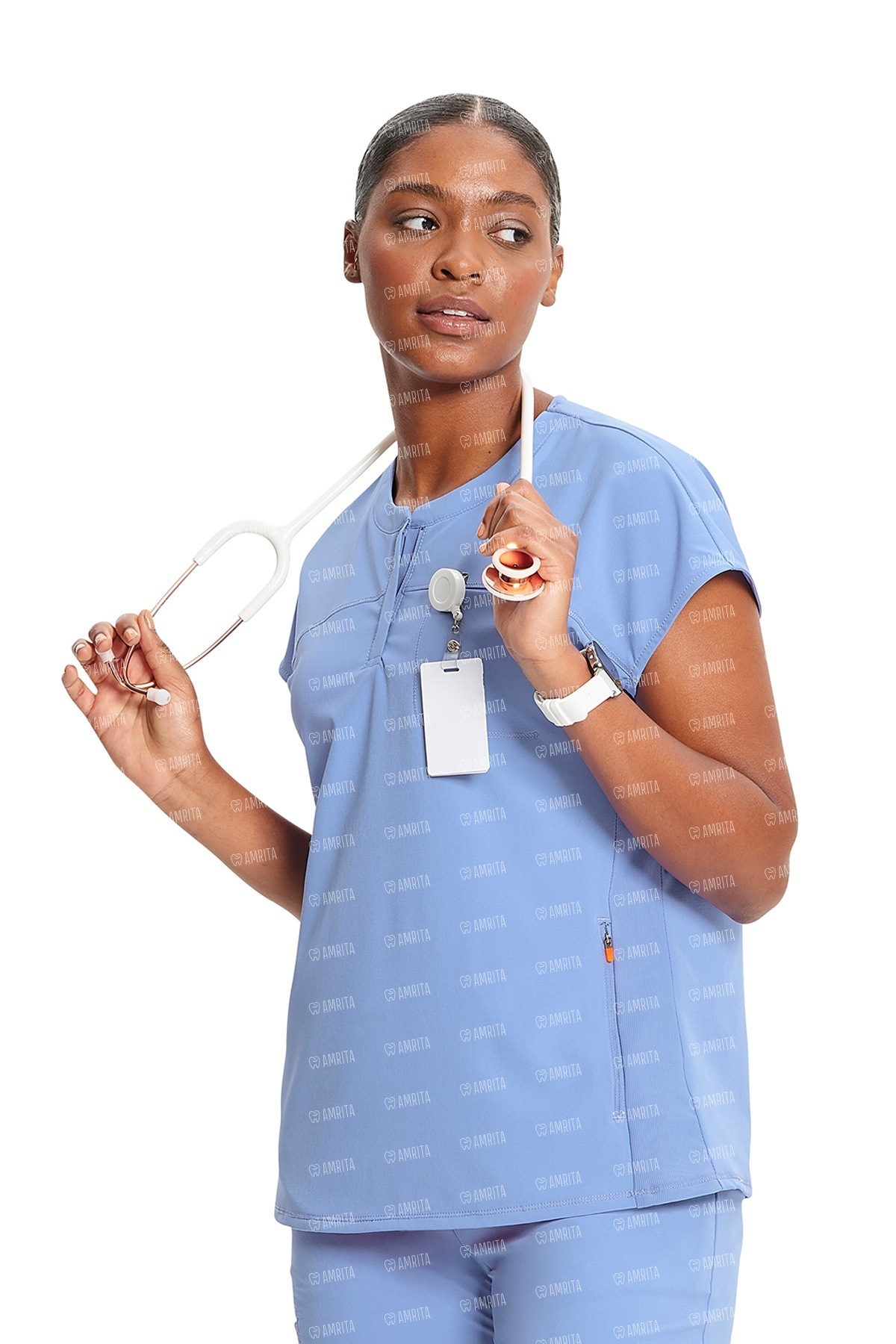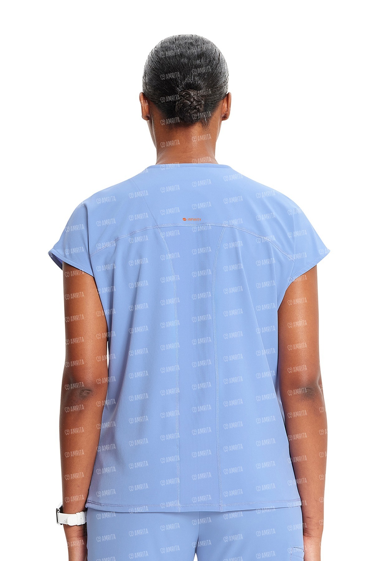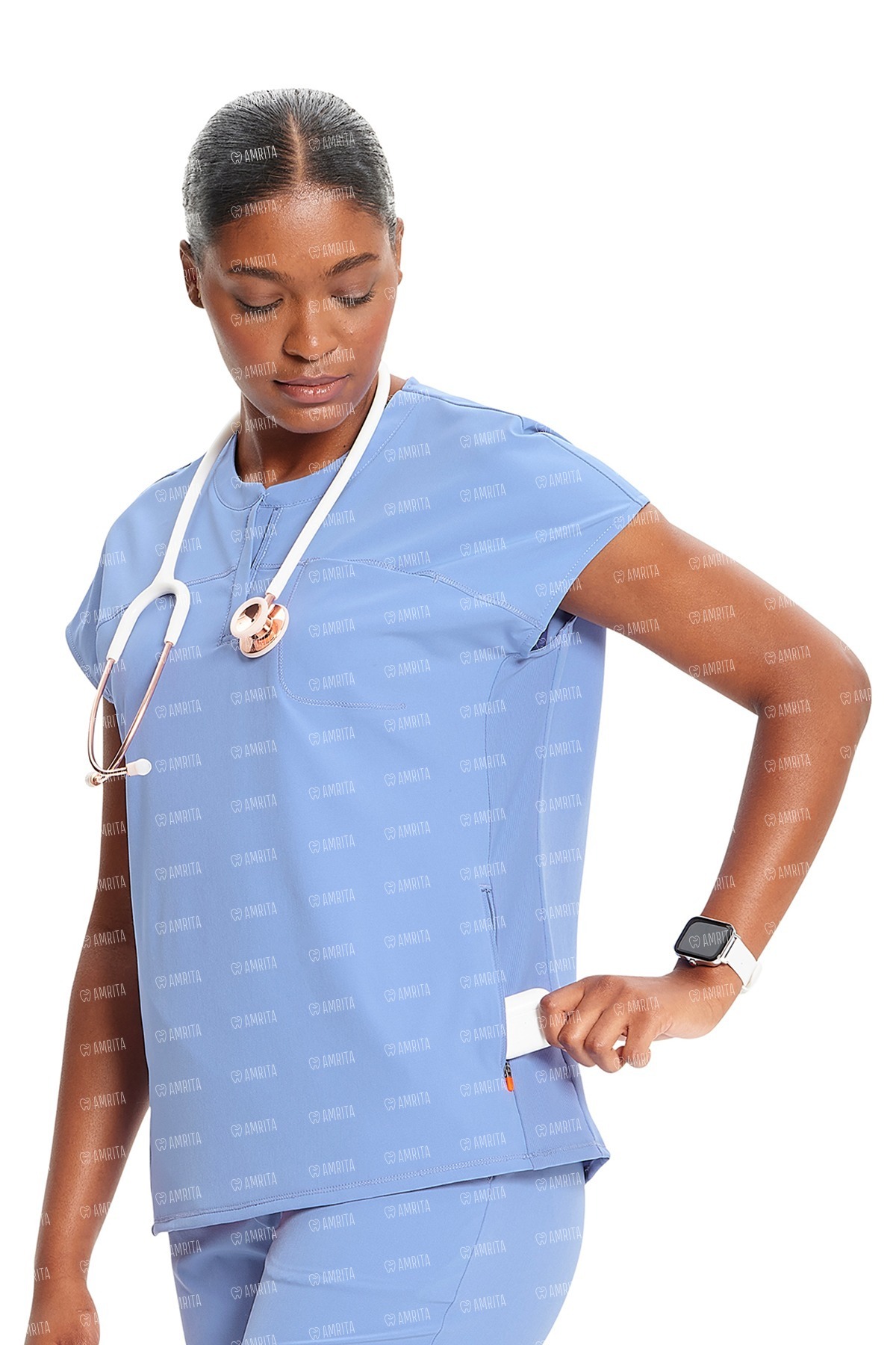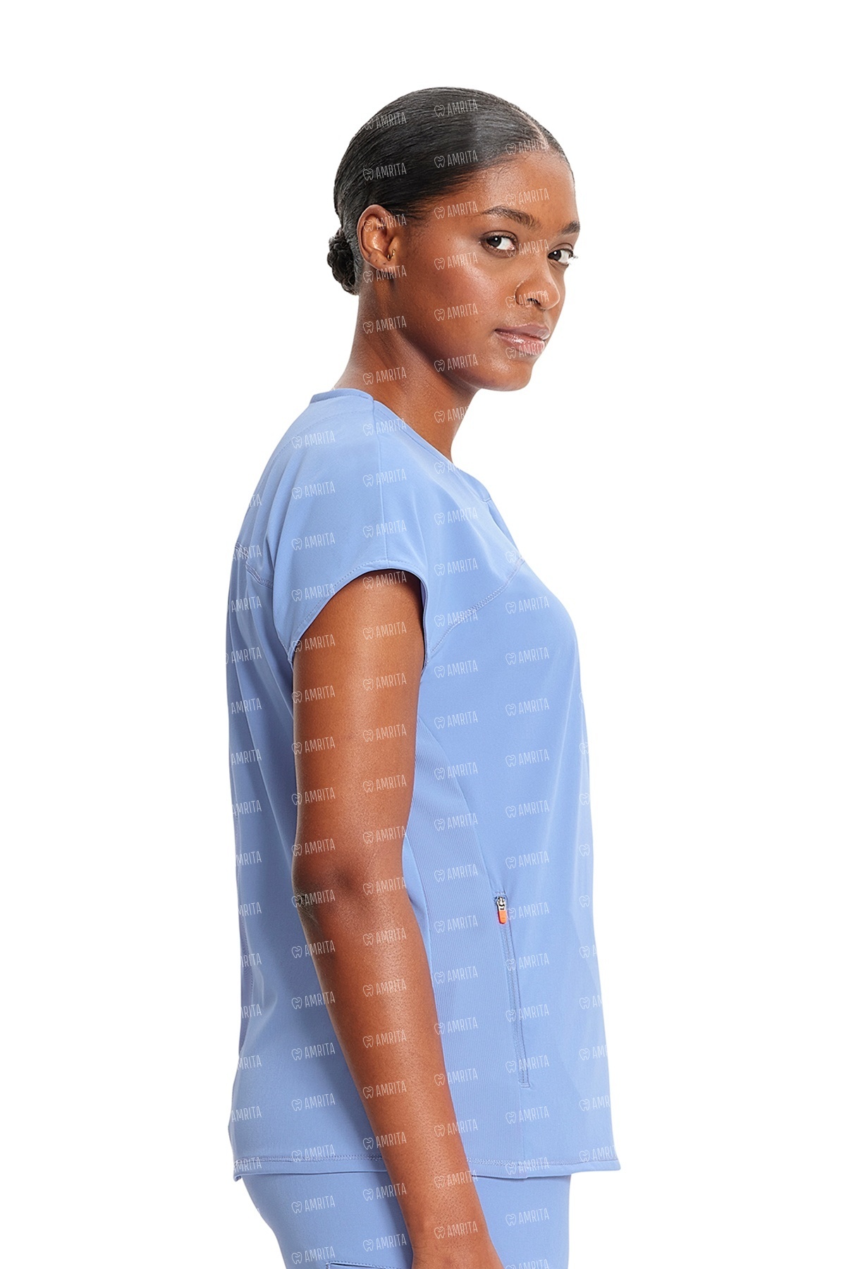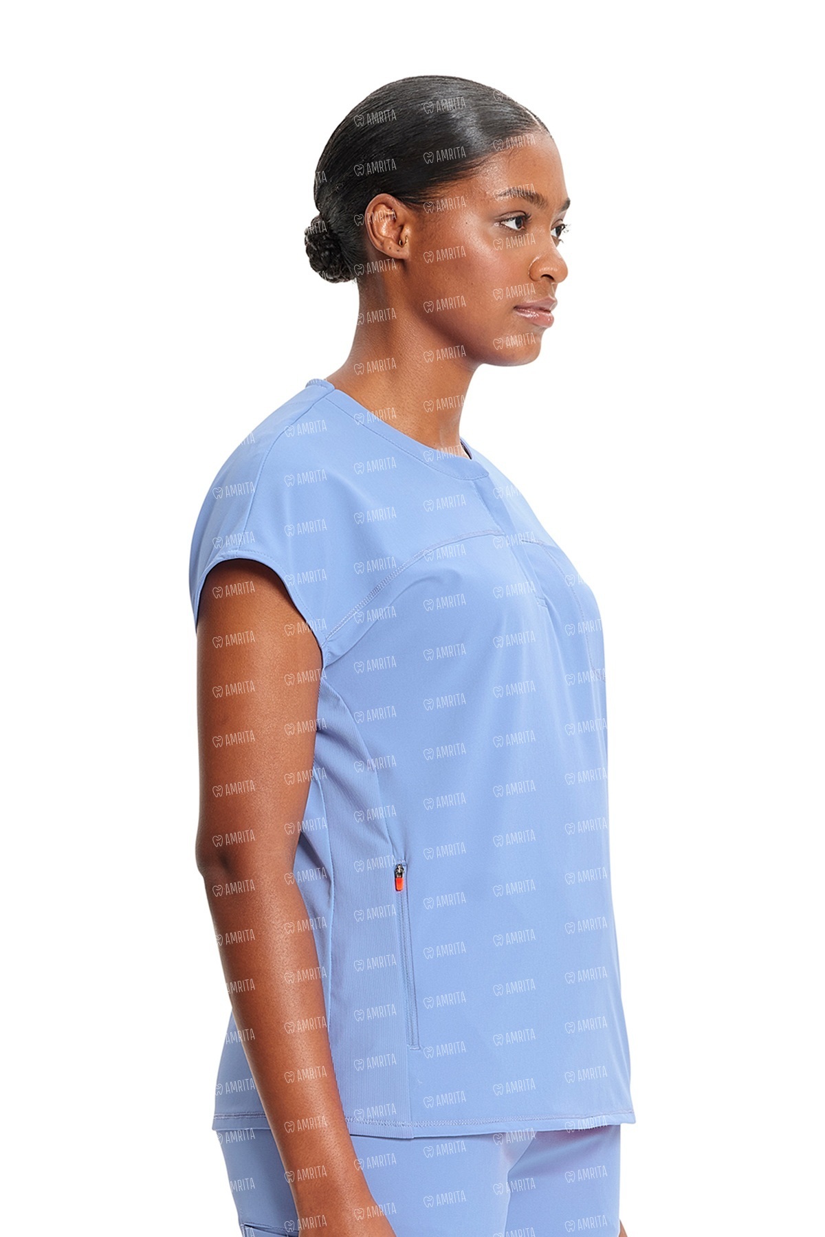 Модель Cherokee IN622A из коллекции CK IN GNR8 отличается минималистичным дизайном и продуманными конструктивными деталями. Топ с круглым вырезом дополнен центральной планкой, под которой скрыта потайная молния, что позволяет легко надевать изделие и сохранять аккуратный внешний вид. Фигурные кокетки спереди и сзади в сочетании с короткими втачными рукавами создают современный женственный силуэт, подходящий для активной работы.