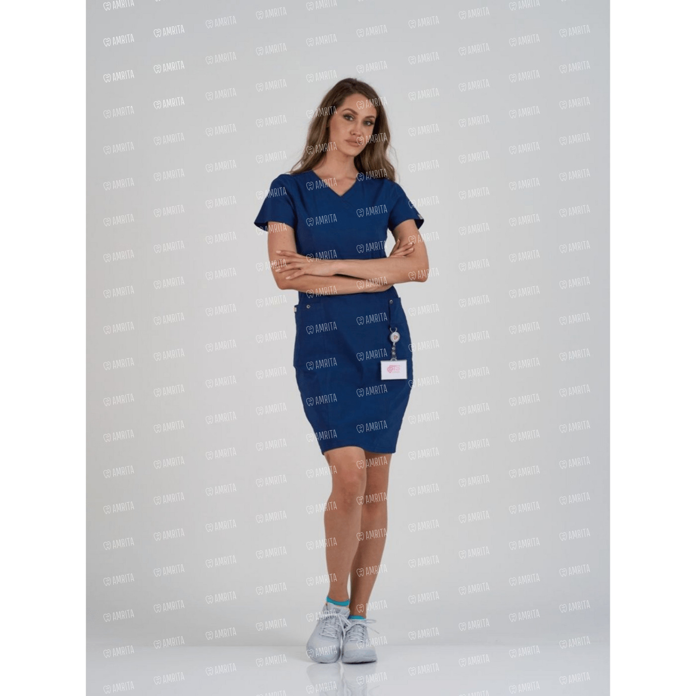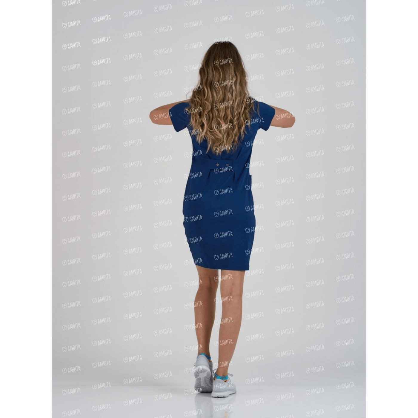 Медицинское платье BS825 супер-стрейч с высоким процентом хлопка, дает вам невероятное ощущение легкости и комфорта. Модель с V-образным вырезом приталенного силуета, дополняется двумя боковыми карманами и пятелькой для бейджа. Объем регулируется поясом сзади, соединенный между собой кнопками.